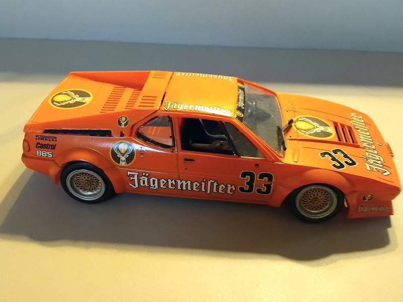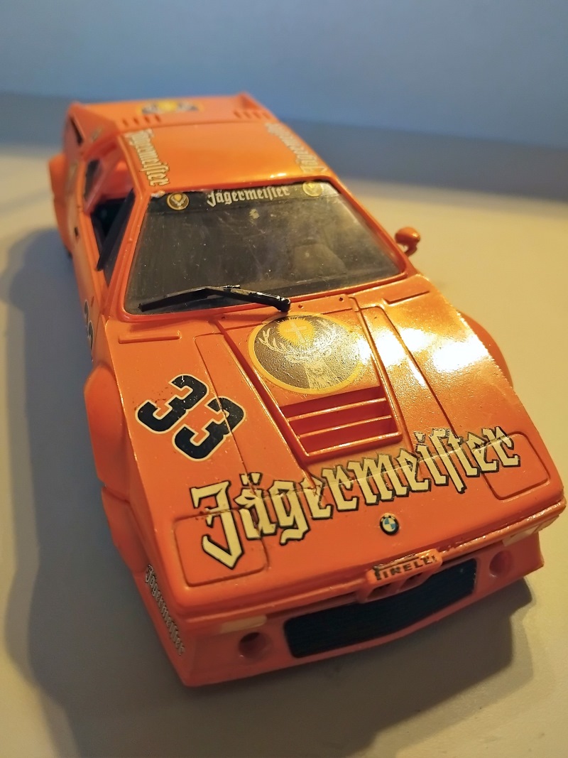 BMW M1"Jägermeister"von Norbert Gauder (1:24 Esci)Dieser Sportwagen war auch als Straßenversion erhältlich: Mit einem Reihensechszylinder, der aus 3,5 l Hubraum 277 PS produzierte. Zwischen 1978 und 1981 wurden 460 Stück gebaut. Die Rennversion leistete je nach Klassenvorgaben und -beschränkungen 470 - 850 PS.