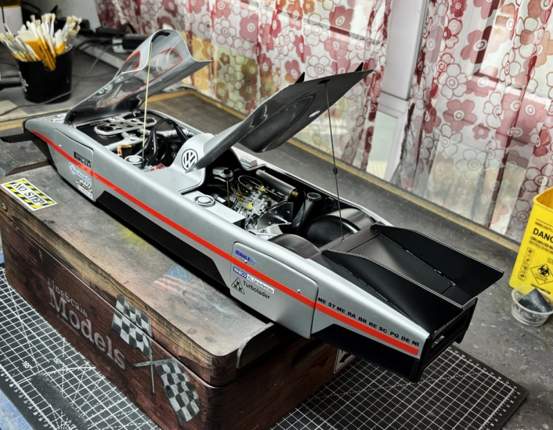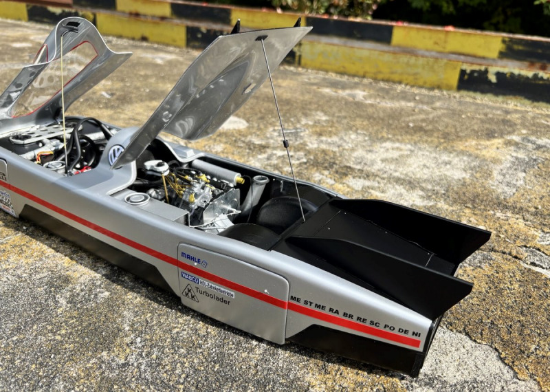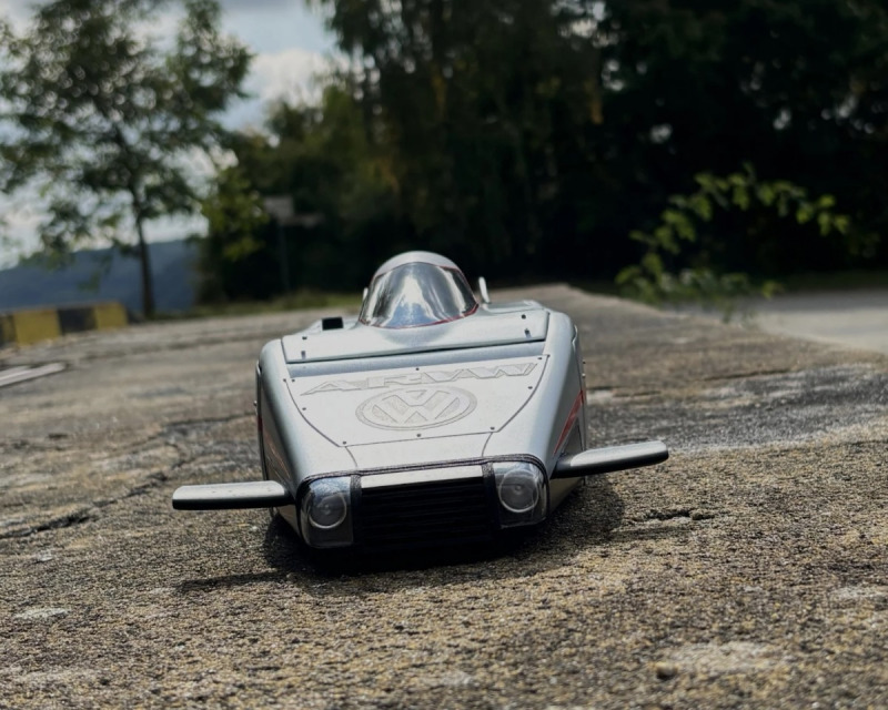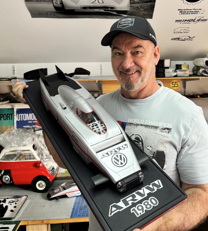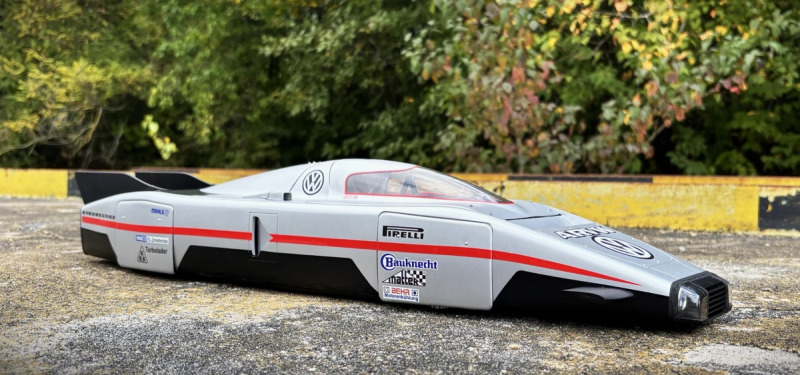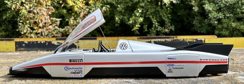 Ein außergewöhnliches Projekt: Der ARVW – ein aerodynamischer Diesel-Rekordwagen aus dem Jahr 1980 – wurde von mir im Maßstab 1:8 detailgetreu nachgebaut. Das Originalfahrzeug war ein stromlinienförmiger Prototyp, mit dem Volkswagen damals über 300 km/h erreichte – angetrieben von einem Dieselmotor!