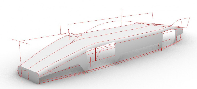 Die Idee zum Modell entstand, als mich einer der damaligen Ingenieure des Projekts kontaktierte. Er fragte, ob ich dieses legendäre Rekordauto nicht als detailiertes Modell umsetzen könnte – mit allem, was dazugehört: funktionale Klappen über den Rädern, eine komplett ausgearbeitete Fahrerkabine und sogar ein detaillierter Motor. Der Designprozess am CAD beginnt