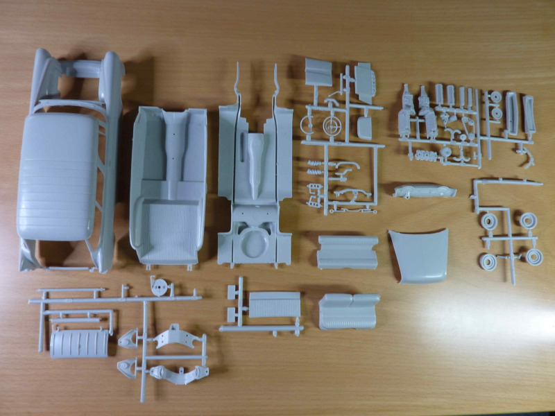Ich habe ja schon einige Automodelle gebaut, aber der Zusammenbau des Nomads brachte mich fast an meine modellbauerischen Grenzen. Das Glasteil und der obere Teil der Heckklappe ließ sich noch gut zusammenfügen. Anschließend musste die Innenraumwanne den unteren Teil der Klappe aufnehmen; zum Schluss noch den Unterboden einsetzen. War ja klar, dass weder das obere noch das untere Teil der Heckklappe einwandfrei öffnete oder schloss… warum sollte es im Modell anders sein als beim Original. Die Stoßstangenhörner verhindern das vollständige herunterklappen, also musste ich sie leicht versetzen. Ist Euch mal aufgefallen, dass fast alle Autos aus den 50ern bis in die frühen 60er keinen linken Außenspiegel aufweisen? Letztendlich kann ich mich zurücklehnen. Es ist doch noch ein schöner Zug entstanden, der das Lebensgefühl der 50er wiederspiegelt!