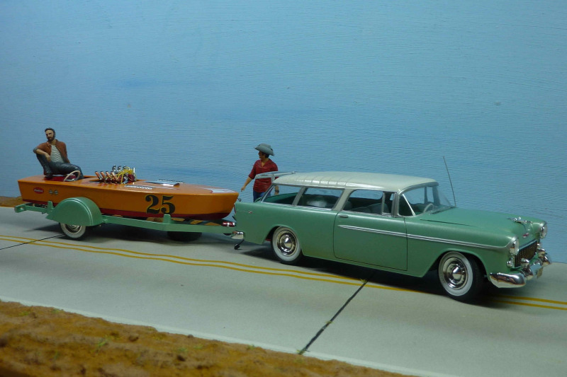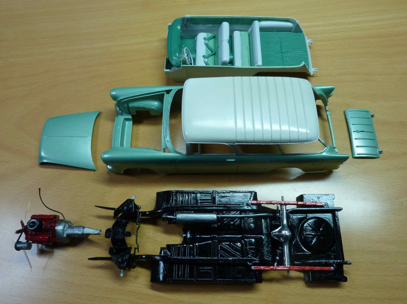 Lange habe ich nach einem geeigneten Zugfahrzeug gesucht. Ein Pick-Up? Ein Van? Dann bin ich in einem bekannten Auktionshaus auf den 1955er Chevy Nomad gestoßen. Leider hatte der Vorbesitzer schon mal alle Teile aus den Tüten entnommen und dann wieder hineingeworfen. Natürlich auch die Glasteile, die dann verkratzt bei mir ankamen. Durch Politur konnte ich noch einiges retten, einen Anpfiff hat der Verkäufer aber dennoch erhalten.