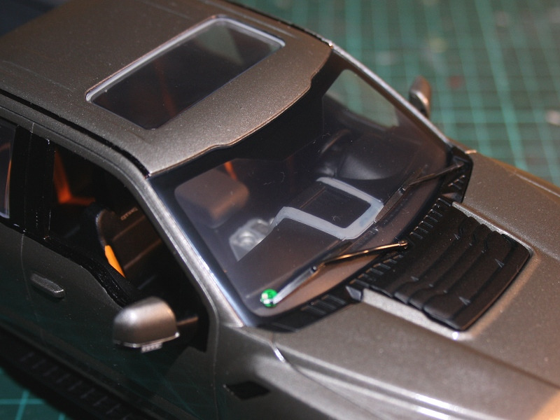 Die Endmontage der fertigen Bauteile wurde in der vorgegebenen Reihenfolge erledigt, alle Verbindungen wurden mit einem Tropfen Klebstoff gesichert. Letztendlich erhielt das Modell doch noch einige Details die nicht im Kit vorhanden waren in Form von Scheibenwischern aus der Restekiste und zwei Auspuffendrohre aus Evergreen-Profilen. Weitere Bilder