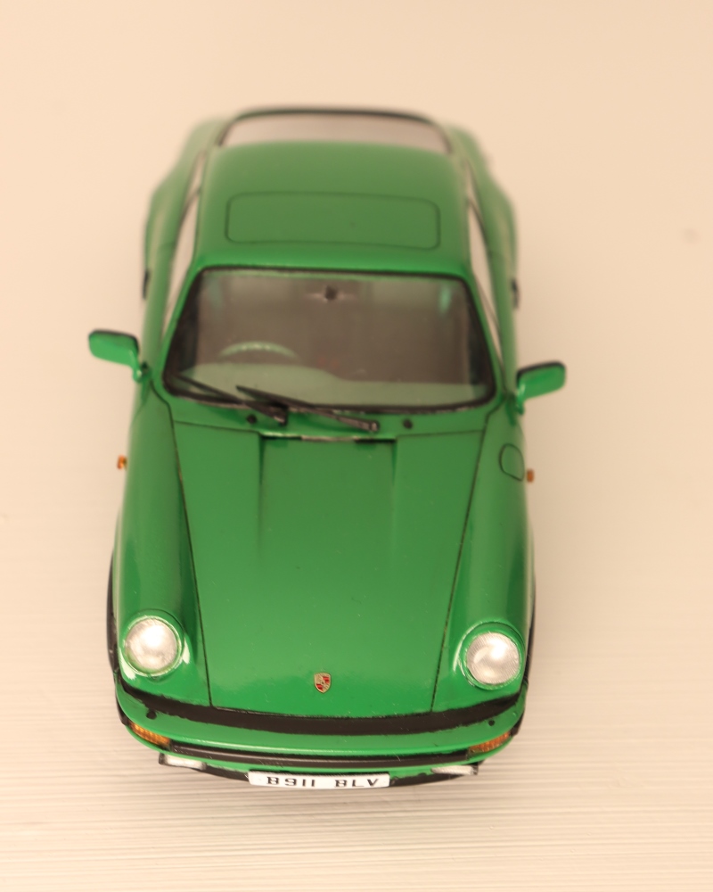Zum BauIch baue eigentlich Zivilflugzeuge und keine Automobilmodelle. Einen knallgrünen 911er hatte ich aber schon einige Zeit im Blick. Mir ging es vor allem darum, das zeitlos elegante Design in der ausgwählten Lieblingsfarbe darzustellen.