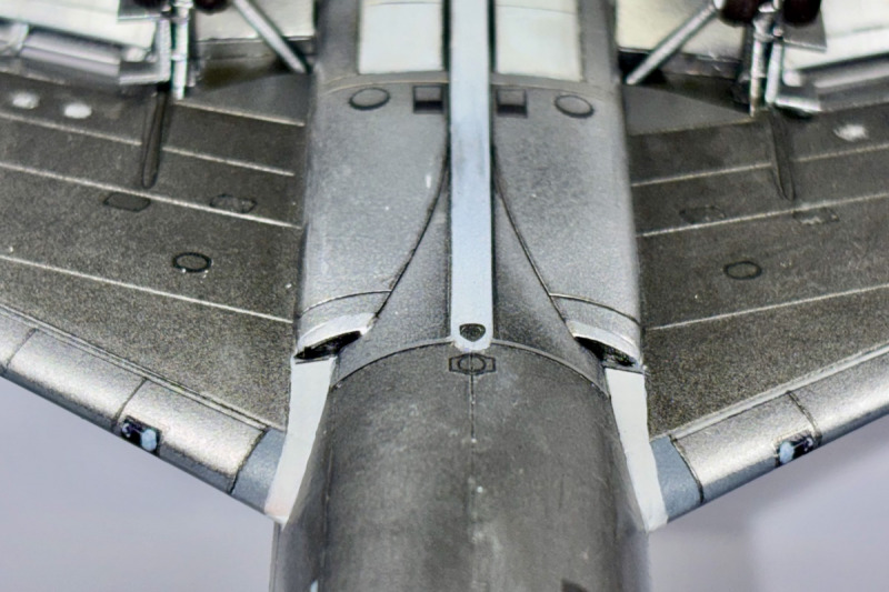 Der neue X-Scale-Bausatz macht einen durchweg guten Eindruck: schöne Details, präzise Gravuren und eine stimmige Form. Einziges Manko ist meiner Meinung nach das Fahrwerk, das etwas schwach detailliert wirkt. Die Räder sehen nicht besonders realistisch aus, die Schächte sind schlicht, und die Fahrwerktüren sind zu dick dargestellt. Ich habe die Räder daher vom Roden-Bausatz übernommen, den Rest des Fahrwerks habe ich so belassen und akzeptiert. Um die 707-227 realistisch darstellen zu können, musste ich mir ein paar Lösungen einfallen lassen, da keine JT4A-Triebwerke verfügbar waren. Authentic Airliners hatte einmal welche für eine 707-Variante im Sortiment, diese waren jedoch vergriffen. Daher habe ich die JT3C-Triebwerke des Roden B720 modifiziert. Als JT3C wären sie deutlich zu groß, als JT4A passen sie jedoch in den Dimensionen recht gut. Hier war viel Spachtel- und Schleifarbeit nötig, um die charakteristische bauchig-runde Form zu erreichen. Mit dem Ergebnis bin ich zufrieden. Wie so oft habe ich für die Klappen wieder auf Laci Flaps zurückgegriffen. Am Heck habe ich noch kleinere Anpassungen am Ruder vorgenommen, das verlängert werden musste, da X-Scale das frühe, kurze Heck darstellt. Für die allererste Variante wäre das korrekt gewesen, doch kurz nach Einführung der 707 wurde das Ruder aufgrund von Stabilitätsproblemen im Flug nach oben verlängert und zusätzlich unter dem Rumpf eine „ventral fin“ nachgerüstet, was ich optisch einfach ansprechender finde.