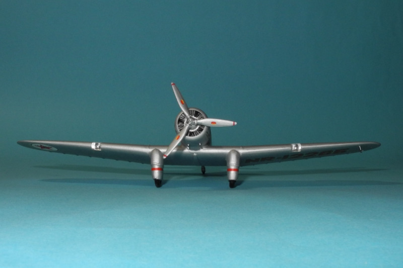 Also, wie von 1:144 gewohnt, Fensterdarstellung mittels Decals und Farbe. Die Pinsellackierung mit gespritztem Mattlack "entschärft", Pitotrohr hinzu, und so sieht sie jetzt aus, die Sky Chief: