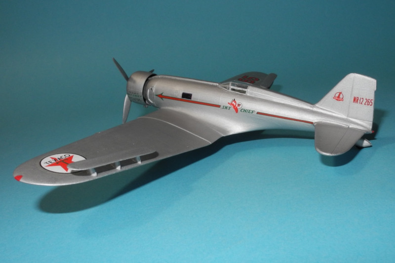 So zum Beispiel diese einsitzige, von Texaco gesponserte NR12265, die Frank Hawks zur Verfügung gestellt wurde. Am 2. Juni 1933 flog er damit in der Rekordzeit von 13 Stunden, 26 Minuten, 15 Sekunden von Los Angeles nach New York, Floyd Bennett Field - das sind fast 4.000 km. Im Jahr darauf bekam die "Sky Chief" einen neuen Eigentümer, und 1936, beim Bendix Trophy-Rennen zerlegte sich das Flugzeug in der Luft, der Pilot konnte sich gerade noch mit dem Fallschirm retten.