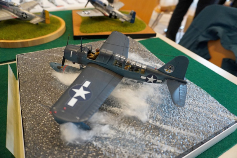 Funktions- und Scalemodellbau in 1:48Japanische Wunderwaffen, Jagd auf Godzilla, kämpfende Mustangs - an diesem Tisch waren nicht nur die gut gebauten Prop-Modelle bemerkenswert - nein, der Bastler hatte jeden seiner Flieger in Displays integriert, und die Flugzeuge wurden mit Licht- und Soundeffekten animiert und in Bewegung versetzt. Das war wirklich toll anzuschauen!
