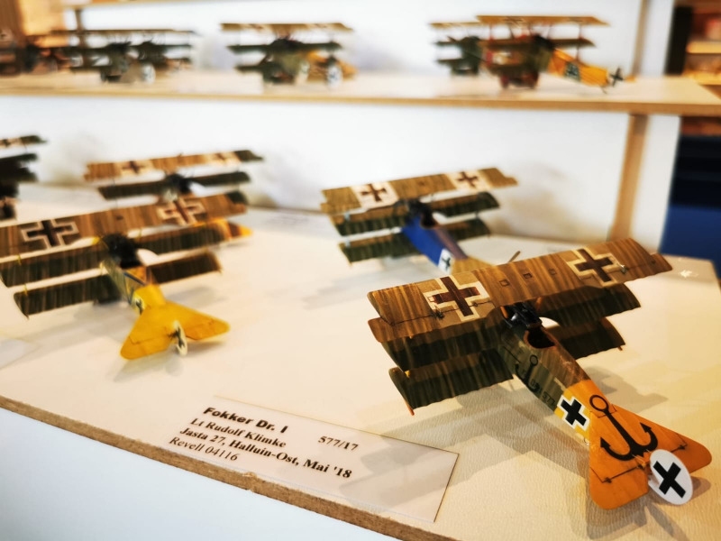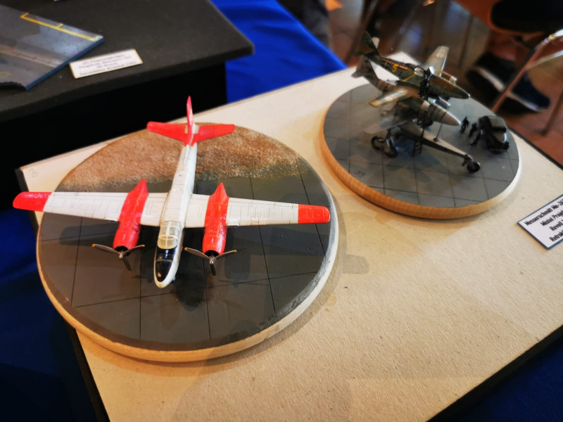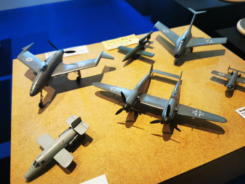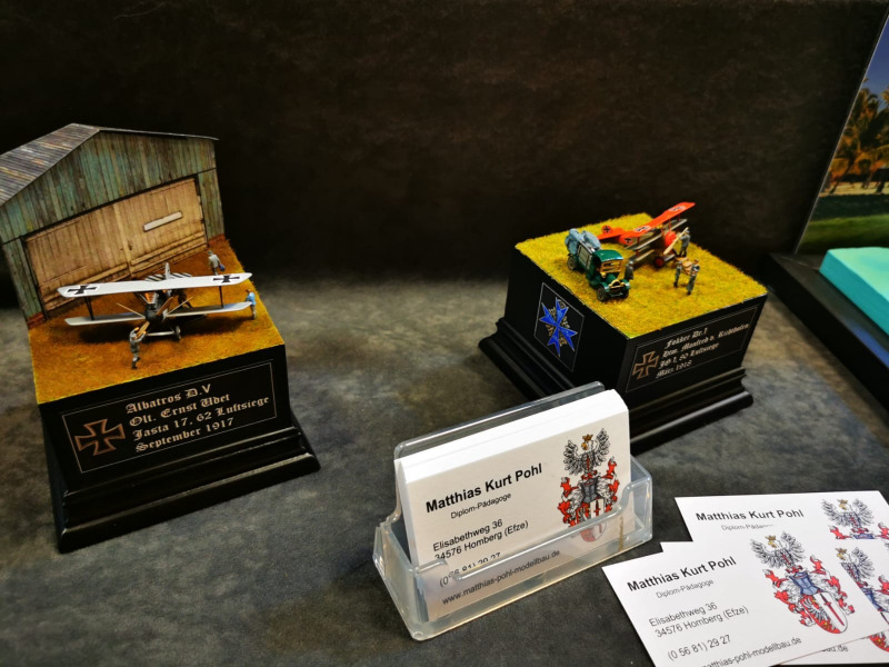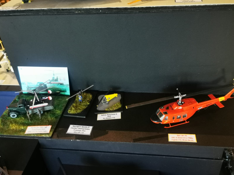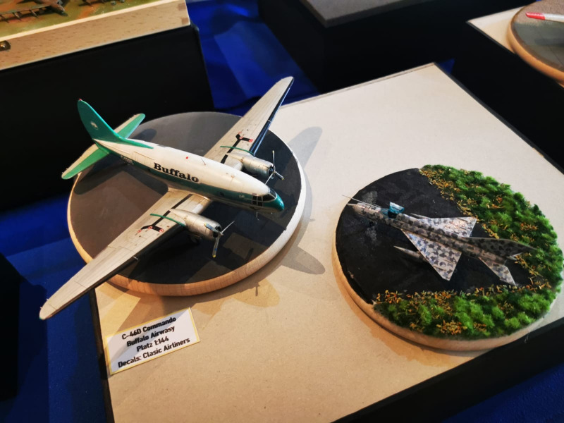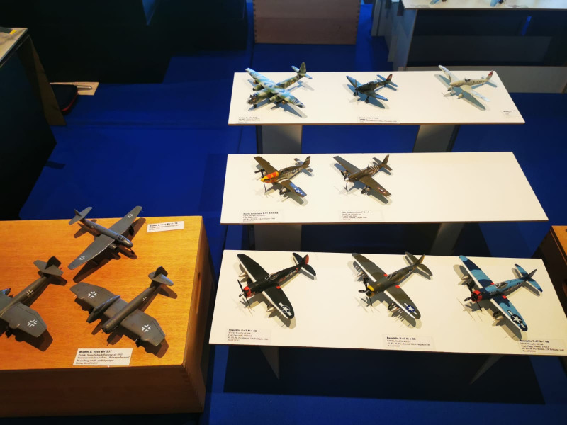 Die Reise beginnt ganz kleinWir blicken zunächst auf die kleinen Flugzeugmodelle der Ausstellung, die sich auf verschiedenen Tischen tummelten, oftmals in ein Minidiorama eingebettet. Sehenswert sind die Micromodelle allemal - man muss nur genau hinschauen! Flugzeuge und Hubschrauber 1:144 und kleiner