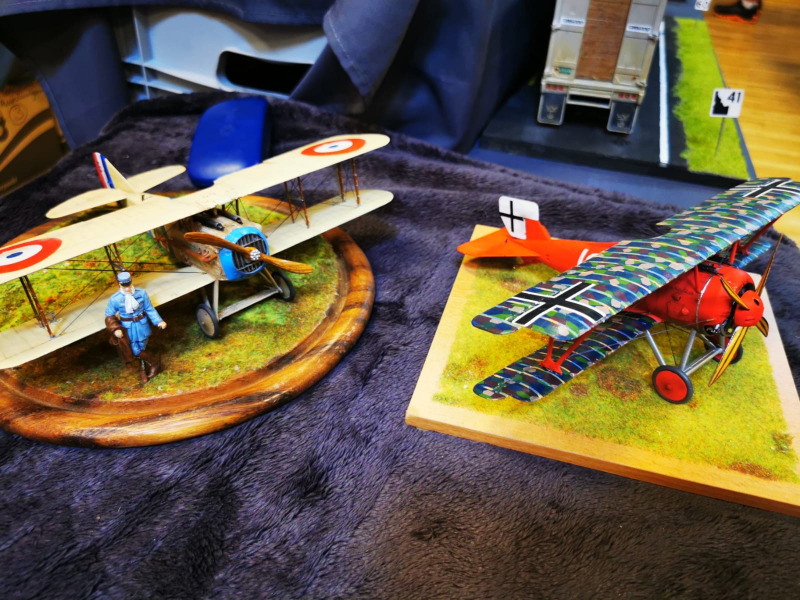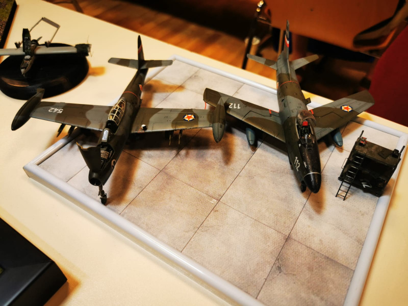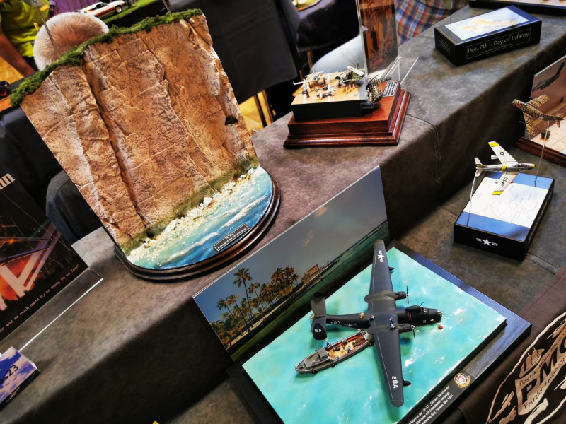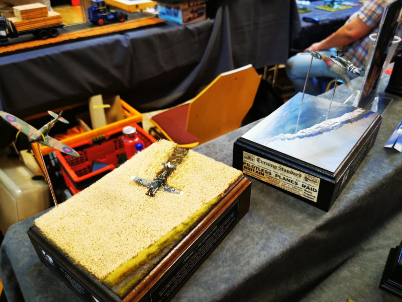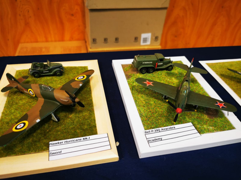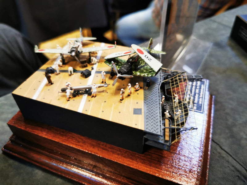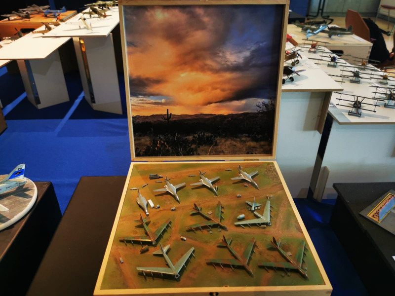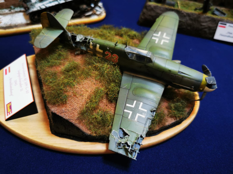 Die Reise beginnt ganz kleinWir blicken zunächst auf die kleinen Flugzeugmodelle der Ausstellung, die sich auf verschiedenen Tischen tummelten, oftmals in ein Minidiorama eingebettet. Sehenswert sind die Micromodelle allemal - man muss nur genau hinschauen! Flugzeuge und Hubschrauber 1:144 und kleiner