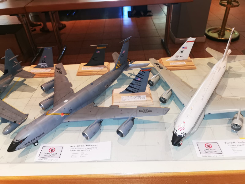 1:72 geht immerFlugzeuge im Maßstab 1:72 sind nach wie vor sehr populär und ermöglichen bei Ausstellungen die Drapierung zahlreicher Modelle bei geringem Platzbedarf - wenn man nicht gerade mehrmotorige Bomber oder Jetflugzeuge anbietet, die auch mal auf mehrere Tische verteilt Platz finden müssen. So ist es beispielweise bei Jost Schreibers imposanten Boeing- und Hercules-Riesen, die ihr weiter unten sehen könnt. Flugzeuge und Hubschrauber 1:72 - Teil 1