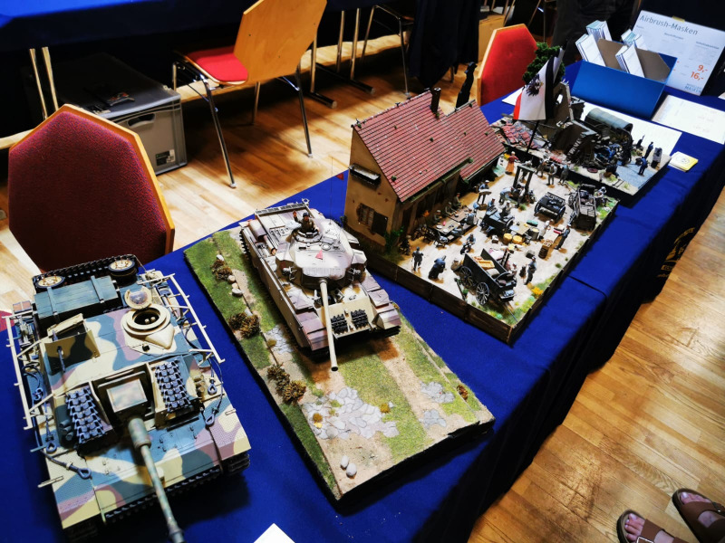 Bei der Ausstellungshalle handelte es sich um einen der beiden Tanzsäle, der bis auf den letzten Platz belegt war. Für besondere Proträtfotos ausgewählter Modelle lud Vereinsvorsitzender Markus dazu ein, diese zwecks besserem Licht in der extra bereitgestellten Fotobox anzufertigen. Und auch für Speisen und Trank war wieder reichlich und gut gesorgt. Die Auswahl an Modellen war toll, Modellkäufe bei Händlern und Sammlern reichlich, Gespräche und Fachsimpeleien tiefgründig, und der schöne Tag verging viel zu schnell.