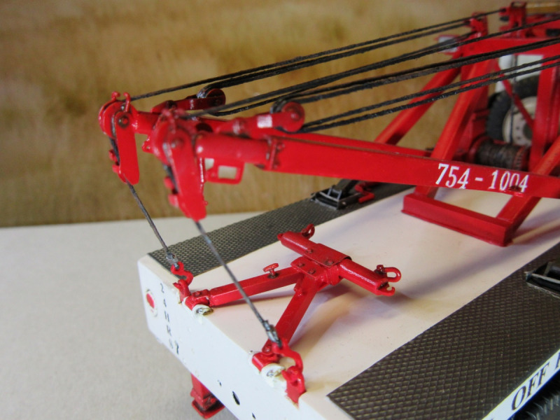 Für den Aufbau und Kran verbaute ich verschiedene Sheetplatten, Profile und Messingbleche. Das Seil besteht aus Nähgarn. Die Decals stellte ich mit einen einfachen Schreibprogramm her und druckte sie mir auf meinem alten Drucker aus.