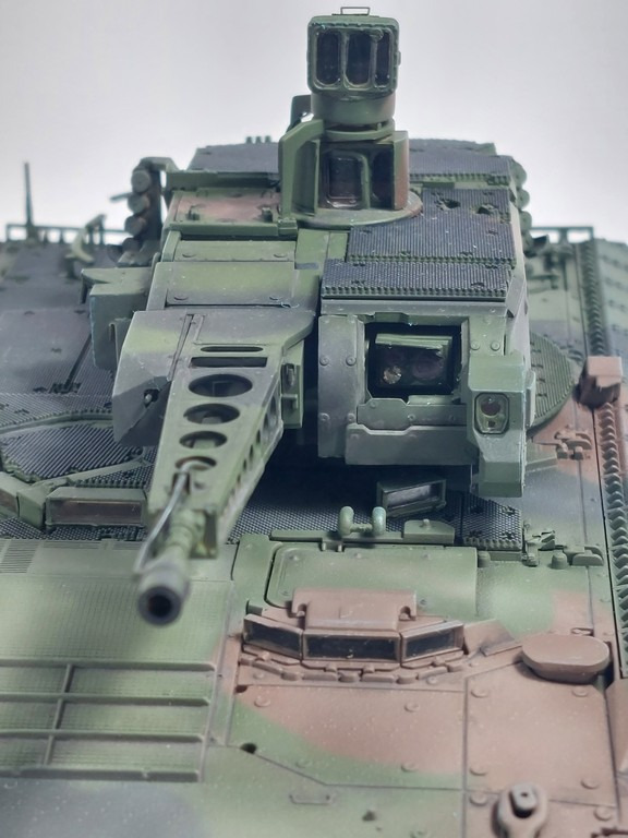 Lackiert wurde mit Farben der Marke Ammo Atom. Diese haben sich sehr gut verarbeiten lassen. Die dezente Alterung wurde erreicht durch leichtes Übernebeln des Fahrzeugs mit Tamiya Buff und durch den Einsatz von Pigmenten. Insgesamt hat der Bau dieses Modells sehr viel Spaß gemacht und den Bausatz kann ich nur empfehlen.