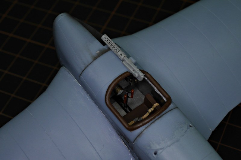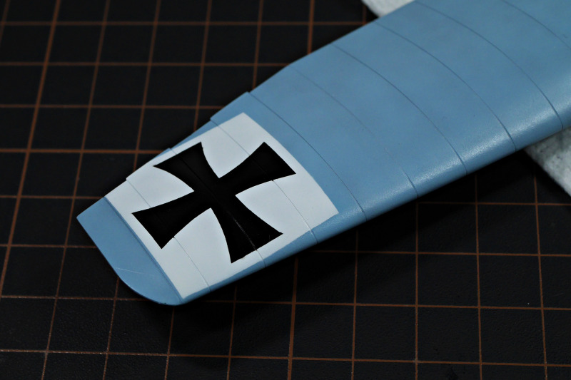 Die LackierungNach einer sorgfältigen Grundierung habe ich das Modell mit der wunderbaren, aber leider nicht mehr erhältlichen Farbe "Blassblau" von Drooling Bulldog lackiert, aber auch Acryl-Lacquer von Mr.Paint und die Metallfarben von Alclad kamen zum Einsatz. Die im Bausatz enthaltenen Decals habe ich nicht benutzt, sondern alles mit Masken lackiert. Leider habe ich an einigen Stellen nicht sorgfältig genug geschliffen, so dass nun bei genauer Betrachtung hier und da doch noch feine Drucklinien erkennbar sind, aber ein perfektes Modell gibt es wohl nicht.
