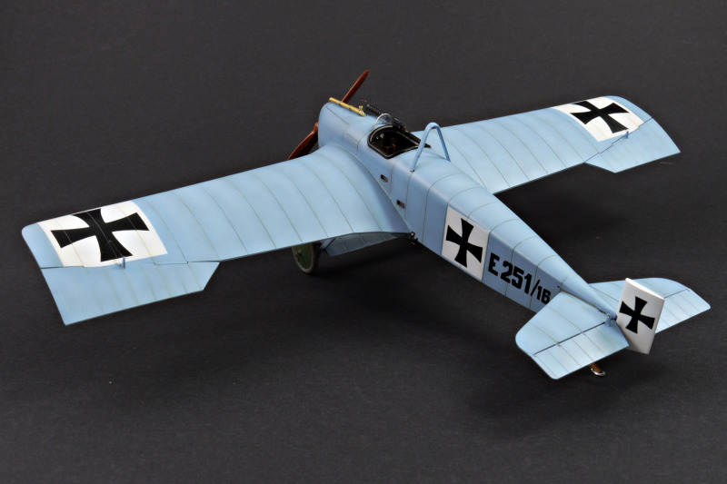 Zurück zur J 2: Es gibt viele Unterschiede zwischen den sechs produzierten Flugzeugen, sogar bei der Spannweite. Ich kenne mindestens vier verschiedene Formen und Größen des Seitenruders aus den verfügbaren Fotos. Jede Zeichnung, die man sich ansieht, zeigt Unterschiede. Von einem wassergekühlten Mercedes D.II mit 120 PS angetrieben, war das Startgewicht mit cirka 1.100 kg letztendlich doch zu schwer für einen erfolgreichen Einsatz. Mehr zum Vorbild findet man bei Wikipedia.