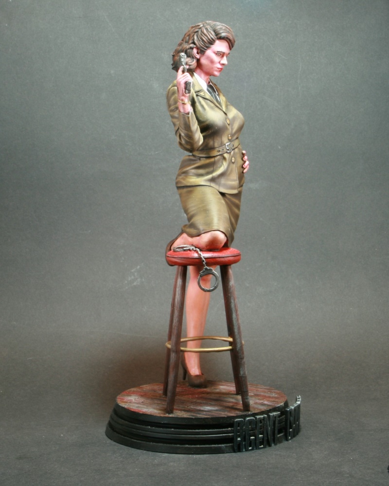 Ich habe mich für Peggy Carter entschieden, im Armeedress. Öl auf Acryl, hier fand ich für mich die Herausforderung, das Kleid in der Olivfarbe zu mischen und die Schatten und Lichter entsprechend hinzubekommen. Ein wahrer Resinklotz, ich stehe aber halt auf Großfiguren, nur habe ich halt auch keinen Platz mehr.