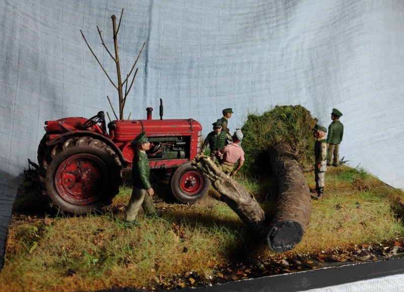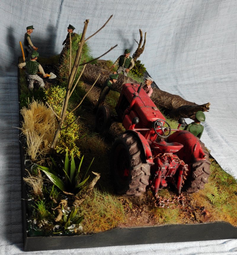 Dies ist eine rein fiktive Geschichte, die mir schon länger in Kopf herumspukte, als ich vor Jahren eher zufällig über die beiden Skelette in 1:35 von Verlinden gestolpert bin. Die beiden schliefen dann irgendwo zwischen meinen Modellen bis zu dem Tag, als ich auf einem Flohmarkt ein paar Traktoren gekauft habe. Ein paar für meine Enkel und der Bolinder Munktell 470 Bison von Atlas in 1:32 für Opa, also für mich. OK, ich kann euch schon hören, das ist doch kein Modellbau, das ist ein Fertigmodell – ja, stimmt, aber ein Dio habe ich dann doch gebastelt.