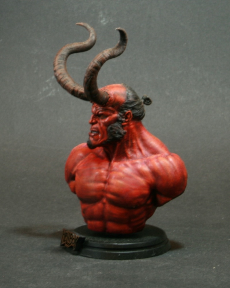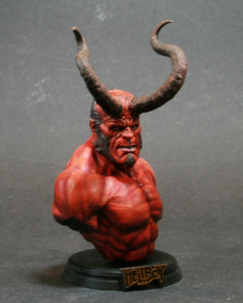 Hier haben wir eine relativ kleine Büste von dem Comiccharacter Hellboy. Dieses Comic aus dem Jahr 1993 wurde öfter verfilmt - unter anderem mit Ron Perlman, der vermutlich auch Vorbild für diese Büste war.