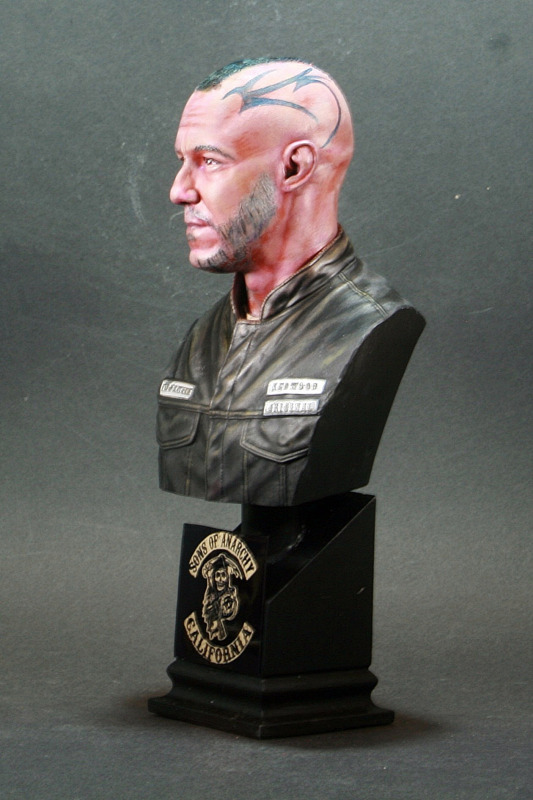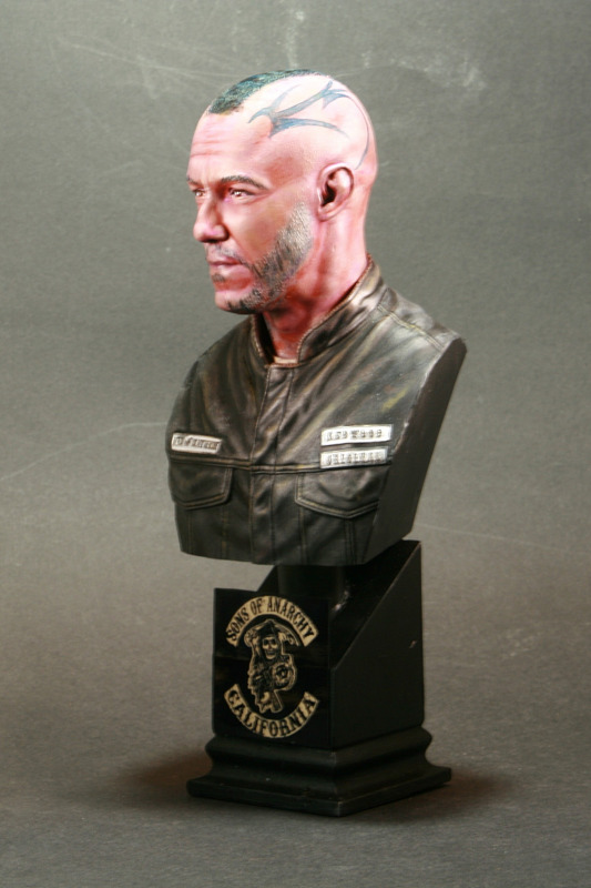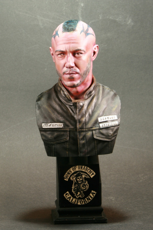 Im folgenden nun die vorerst letzte Büste der Reihe "Sons of Anarchy", obwohl ja noch welche fehlen, die aber noch nicht modelliert sind. Hohl gedruckt wie immer in Resin, bemalt mit Öl auf Acryl.