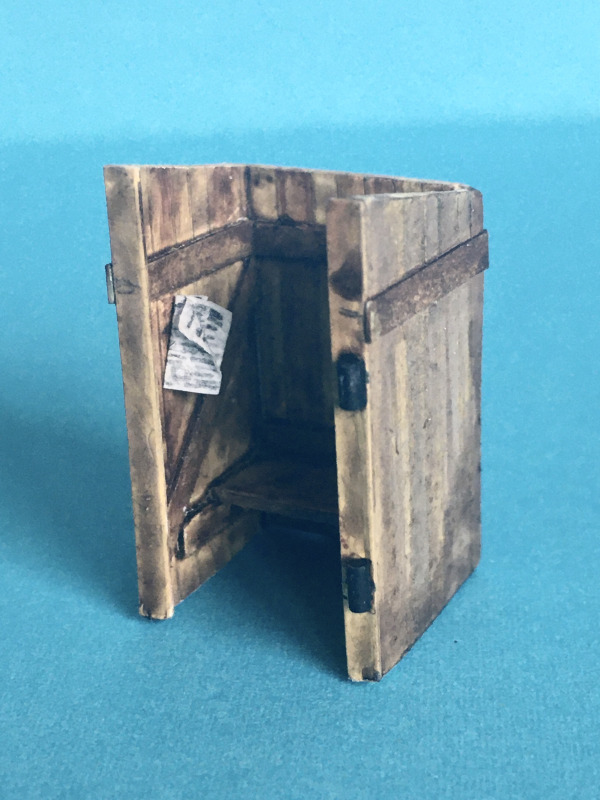 Und was hat das alles mit einem Eimer zu tun? Für ein anderes Projekt brauchte ich einen Eimer im Maßstab 1:72. Da ich ungern auf Accessoires vom „Aftermarket" zurückgreife, kam nur der Eigenbau in Frage. Gesagt-Getan! Beim Basteln kam mir meine Kindheit und Jugend in den Sinn, denn da gab es in manchem Dorf noch Plumps-Klo‘s... Bei manchen fielen die Exkremente nur in eine Grube unter dem Häuschen, bei anderen in einen Eimer unter dem „Thron". Mit Sand wurde dann Lage um Lage abgedeckt, bis der Eimer voll und zum Entleeren bereit war. Will heißen: Die Idee und Gestaltung zu diesem Diorama begann und kam mit dem Eimer! Joachim Forg Publiziert am 05. Dezember 2025 © 2001-2025 Modellversium Modellbau Magazin | Impressum | Links |