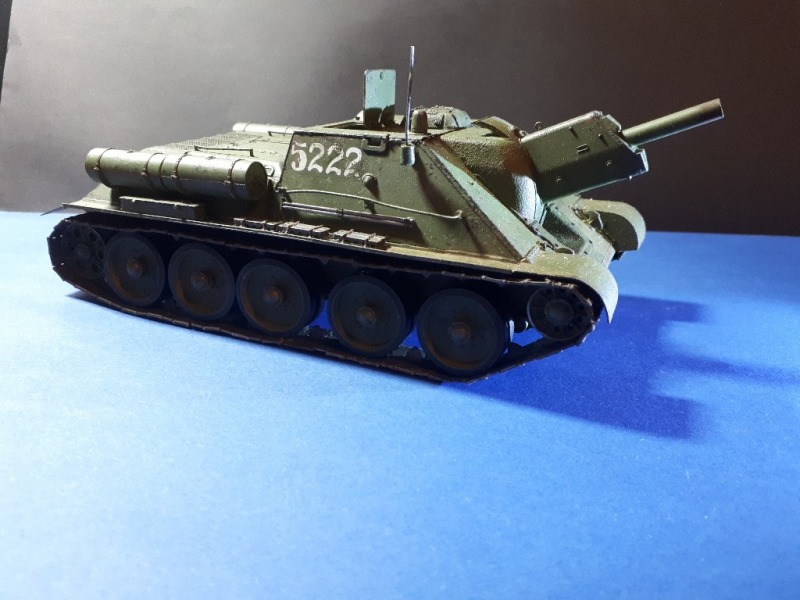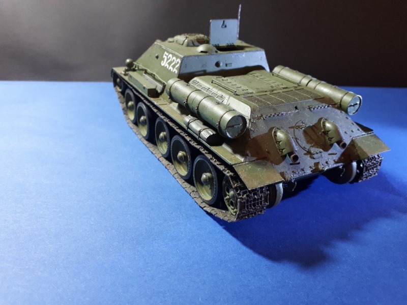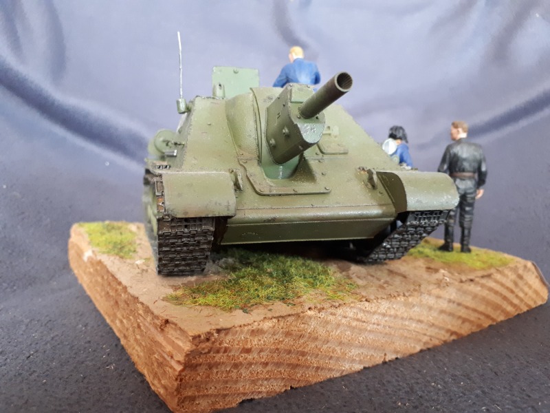 Hier noch einmal ein paar harte Fakten zum Fahrzeug: Die Fahrzeuge wurden im Ural-Werk für schweren Maschinenbau in Swerdlowsk (heute Jekaterinburg) produziert, als Fahrgestell sollte der Kampfpanzer T-34 dienen. 29,64 t konnte das mittlere Sturmgeschütz auf die Waage bringen. Die Besatzung bestand aus fünf bis sechs Mann. Die Hauptwaffe war wie eingangs schon erwähnt, eine 122 mm-Haubitze mit 32 bis 40 Schuss, als Sekundärwaffe wurden provisorisch Handfeuerwaffen wie die MP PPSch und einige Handgranaten mitgeführt. Angetrieben wurde der Panzer von einem 500 PS starken 12-Zylinder Dieselmotor W-2-34, womit immerhin 55 km/h erreicht wurden und das Fahrzeug bis zu 600 km Reichweite hatte. Nach 638 Fahrzeugen wurde die Produktion eingestellt. Das Fahrzeug ist nicht zu verwechseln mit der späteren SU-122-54, welche unter anderem beim Prager Frühling traurige Berühmtheit erlangen sollte.