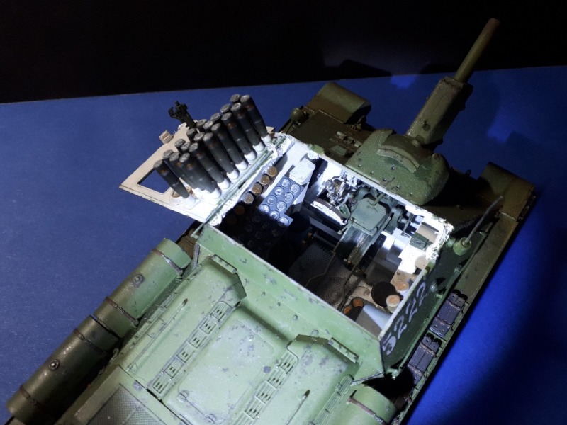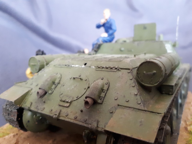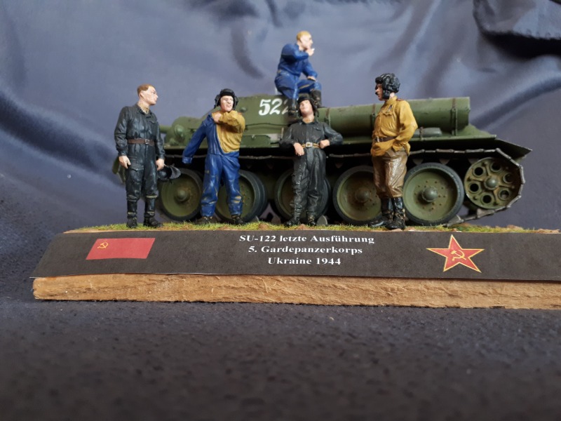 Eine fünf köpfige Besatzung aus dem Set „soviet tank crew at rest“, ebenfalls von Miniart, rundet die Sache ab. Auch die Figuren wissen sehr zu überzeugen. Ein schöner Faltenwurf und sehr authentische Uniformen bereichern das Modell.