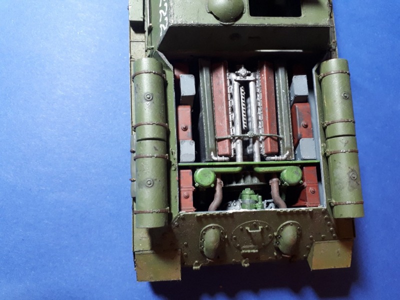 Wie alle Miniart Modelle ist der Bausatz sehr umfangreich und bietet mit weit über 800 Bauteilen allerfeinsten und langen Modellbauspaß. Der Panzer zeigt alles, was das Original auch hatte, beginnend vom Getriebe, über einen sehr ausführlichen Motorraum und endet im Kampfraum. Doch auch außen findet man immer wieder neue Sachen zu bestaunen.