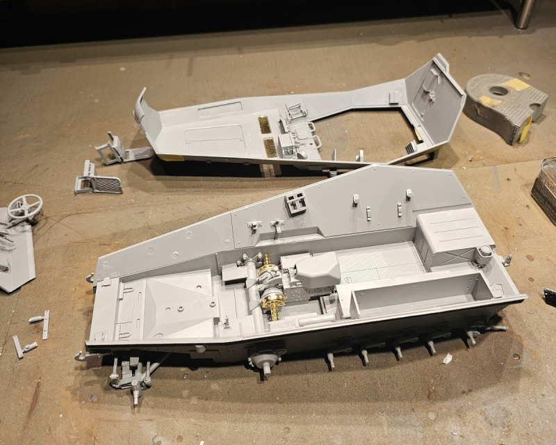Zum ModellAnfang des Jahres 2025 brachte Das Werk das Sd.Kfz.250 in der Ausführung A auf den Markt. Das Modell entstand in Kooperation mit Takom. Wenn man das Sd.Kfz 251 schon gebaut hat, fällt sofort auf, um wieviel kleiner das 250er ist. Das schlägt sich natürlich auch in der Teileanzahl wieder. Als netter Bonus liegt dem Modell eine Fahrerfigur bei. Wie von Das Werk gewohnt, war die Passgenauigkeit sehr gut. Auch die Details wissen zu überzeugen. Da ich ein Fahrzeug des Afrikakorps bauen wollte, standen ein paar kleine Umbauten an. Es wurde ein Gestell für die Reservekanister am Heck aus Messingstreifen gebaut. Die Kanister entstanden im 3D-Druck. Im Innenraum wurde etwas mehr Platz durch weglassen des Schranks geschaffen. Auch die Kette, die im Bausatz dabei war, wurde durch eine eine Resinkette von Panzerwerk ersetzt.
