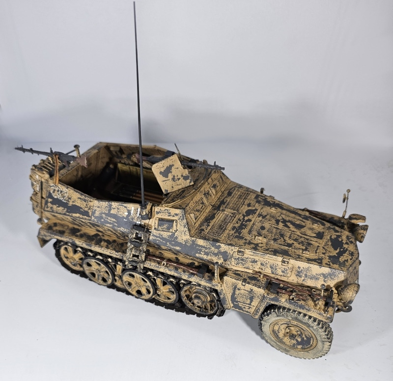 Zum Original:Der leichte Schützenpanzerwagen Sd.Kfz. 250 (Sonderkraftfahrzeug 250) war ein Halbkettenfahrzeug aus deutscher Produktion, das im Zweiten Weltkrieg von der Wehrmacht eingesetzt wurde. Als leichter Schützenpanzerwagen (SPW) gehörte es zur Ausrüstung der Panzeraufklärungsabteilungen und einiger Kradschützenabteilungen.
