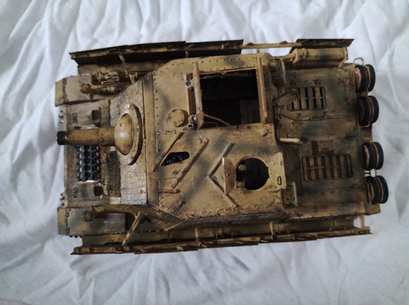 Ich dachte mir: Bevor ich ihn jetzt in eine Kiste auf dem Dachboden lege und womöglich viele Teile für immer verliere, lege ich ihn lieber direkt auf den Schreibtisch und arbeite ihn noch einmal gründlich auf. Zufrieden war ich mit dem Ergebnis ohnehin nie. Zwar war der Panzer sauber gebaut, doch Bemalung und Weathering wirkten eher schnell erledigt als mit Liebe zum Detail ausgeführt – etwas, das dieses Fahrzeug definitiv verdient hat.