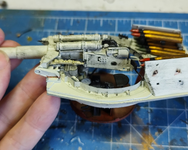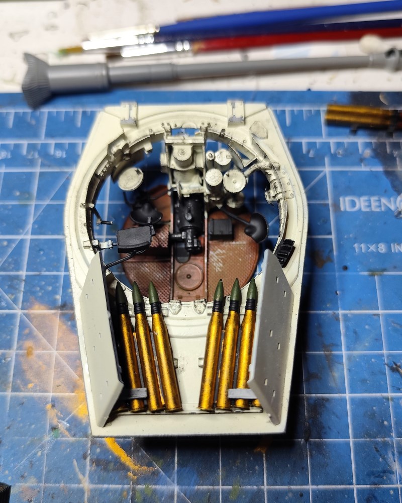 Fangen wir mit dem Turm an: hier sind sowohl die durch die offenen Luken erkennbaren Teile gut detailliert, wie auch die Innenseite der Turmteile. Und natürlich die Kanone: