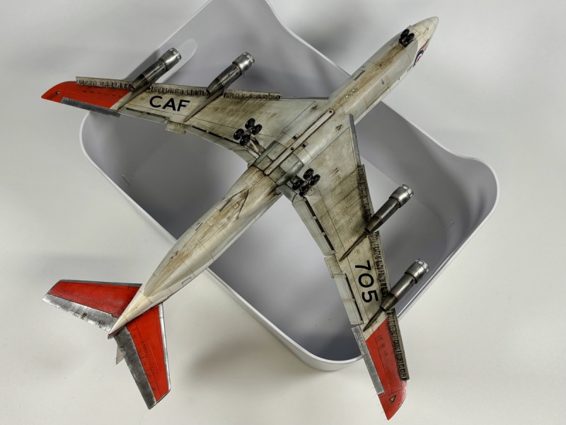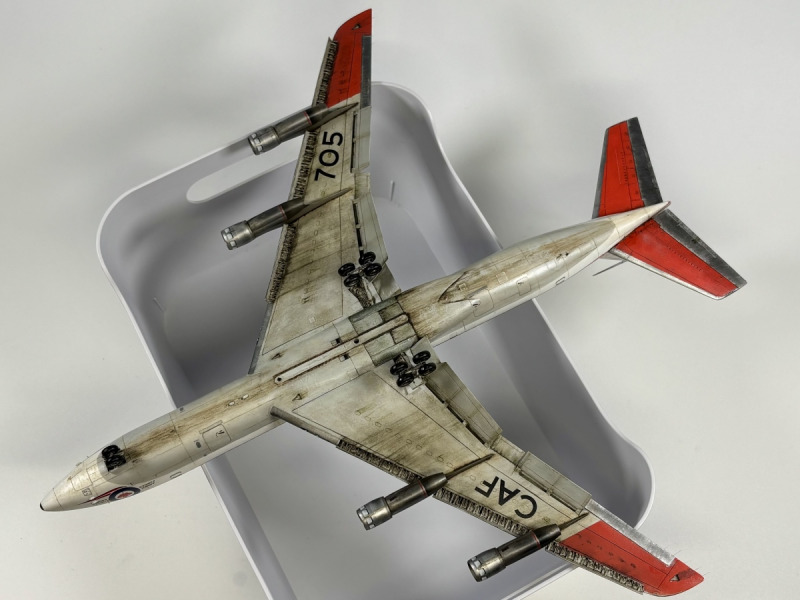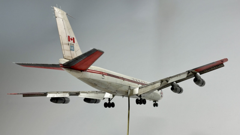 Mit dem Endergebnis bin ich mehr als zufrieden – das Modell ist zu meinem absoluten Liebling in der Vitrine geworden. Das liegt nicht zuletzt daran, dass die Boeing 707 ohnehin mein absolutes Lieblingsflugzeug ist: elegant, kraftvoll und mit einem ganz eigenen Charme, der mich schon immer fasziniert hat. Obwohl der Bau mittlerweile schon drei Jahre zurückliegt und ich seither noch einige weitere Flugzeuge fertiggestellt habe, bleibt dieser Flieger in puncto Ausstrahlung und Wirkung für mich unerreicht.