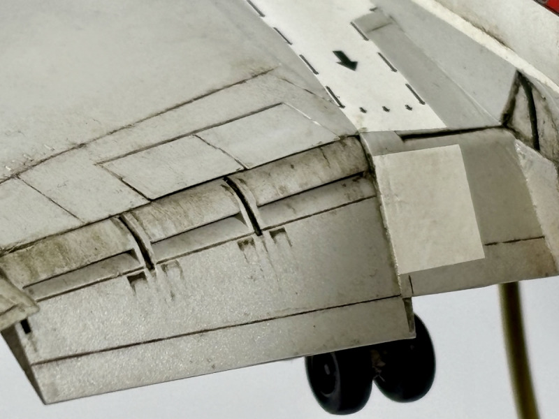 Für dieses Projekt griff ich erneut auf den erstklassigen Bausatz von Authentic Airliners zurück, den ich diesmal im Landeanflug darstellen wollte. Das bedeutete allerdings einiges an zusätzlicher Arbeit. Zum Einsatz kamen wieder die Laci Flaps, die ich an den Tragflächen anbringen wollte. Die Resinflächen des Kits habe ich dafür mit Säge und Dremel bearbeitet – was technisch problemlos funktionierte, aber eine ziemlich staubige Sauerei war. Solche Arbeiten sollte man besser erledigen, wenn die bessere Hälfte ein paar Stunden außer Haus ist.