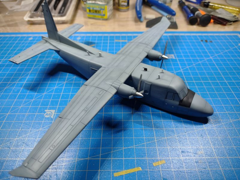Zum BauDa ich den Bausatz bereits im Januar 2024 hier auf MV vorstellte, war es an der Zeit, dieses Modell auch endlich zu realisieren. Tatsächlich fing ich mit dem Bau bereits im Dezember 2023 an. Aber wie es so oft ist, kommen viele andere Dinge dazwischen, so dass ich letztlich erst im Oktober 2025 mich wieder dieses Projektes annahm. Der vorliegende Bausatz ist so konzipiert, dass man daraus diverse Versionen der C-212 bauen kann. Entsprechend bleiben auch viele Teile übrig. Für die vorliegende 400er Serie musste zunächst der vordere Rumpfbereich entfernt und durch den mit der „langen Nase“ ersetzt werden. Das ging auch problemlos vonstatten. Hier empfehle ich jedem, der ebenfalls diese Version bauen möchte, stabile Sägen wie bspw. von CMK zu nutzen. Fotogeätzte Sägen, wie ich sie von Trumpeter nutzte, bleiben dann doch häufiger hängen. Bevor die beiden Rumpfhälften mit dem Cockpit verbunden wurden, mussten die standardmäßig runden Fenster eckig ausgefeilt werden. Hier sollte unbedingt eine feine Vierkantfeile benutzt werden! Hier hätte im Übrigen Special Hobby eine bessere Lösung anbieten können, bspw. in Form einer austauschbaren Fensterleiste. Aber gut, das ist vielleicht Meckern auf hohem Niveau. Beim Zusammenfügen der Rumpfhälften zeigte sich das erste wirkliche Manko des Bausatzes: im Bereich der Heckklappe fügen sich die Hälften nicht bündig einander, da eine Hälfte etwas eingesunkener war als die andere. Dadurch stand eine Kante über, welche mit recht viel Spachtel- und Schleifarbeit beseitigt werden musste. Der restliche Bau der einzelnen Baugruppen ging aber ohne Probleme vonstatten. Nach der Grundierung und dem Preshading ging es auch schon an die Hauptbemalung. Hierzu nutzte ich wie immer Vallejo-Farben. Für das Grau trug ich Vallejo 71.120 Dark Ghost Grey in dünnen Schichten auf. Zur Versiegelung nutzte ich diesmal zum ersten Mal den Intermediate Gauzy Agent Shine Enhancer von AK Interactive - ein hervorragendes und unkompliziertes Produkt. Danach ging es auch schon an die Decals und zum zweiten und letzten Manko dieses Bausatzes. Denn Special Hobby lässt seine Decals mittlerweile von Eduard drucken und entsprechend sind das diese „neuartigen“ Decals, wo die obere Trägerfolie abgezogen werden soll (auch wenn das stets von Eduard dementiert wird). Und hier kam es mitunter, auch aufgrund mangelnder Erfahrung im Umgang mit diesen, zu einigem Stirnrunzeln und Fluchen. Daher habe ich letztlich nur am Seitenleitwerk und auf der Oberseite der Tragflächen die Decals entsprechend bearbeitet. Die restlichen Decals habe ich klassisch aufgetragen und behandelt. Auch wenn ich nach wie vor ein Skeptiker dieser neuen Decals bin, möchte ich einen Tipp geben: die Decals sollten nach der Behandlung mit Micro Set und Micro Sol mindestens anderthalb bis zwei Tage durchtrocknen. Danach kann vorsichtig die Deckfolie gelöst werden. Nachdem die Decals ebenfalls mit dem Gauzy Agent versiegelt wurden, ging es zum Washing. Hierfür benutzte ich fertige Produkte von Ammo of Mig. Abschließend kam eine Schicht Premium Seidenmattlack von Vallejo (62.063) auf das gesamte Modell. Weitere Verschmutzungen wie beispielsweise am Unterrumpf oder den Klappen trug ich mit Oilbrushers von Ammo of Mig auf und verblendete diese mit entsprechendem Verdünner, ebenfalls von Ammo. Und wie immer gilt: Sparsam sein mit Ölfarben. Weniger ist mehr! Zum Schluss muss ich sagen, dass trotz des einen oder anderen Frustmoments dieser Bausatz ein Vergnügen war und ich ernsthaft überlege, noch ein zweite venezolanische Variante zu bauen. Bis das aber passiert, wird noch etwas Zeit vergehen, da schon andere Projekte warten.