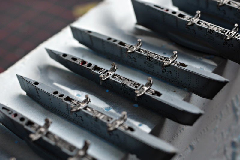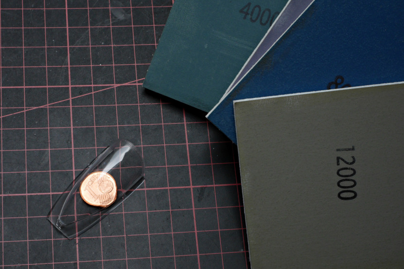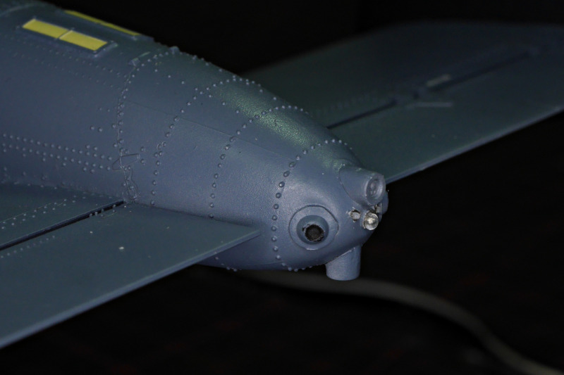 Die LackierungDie Lackierung erfolgte mit Acryl-Lacquers von Mr. Paint. Statt Schwarz habe ich NATO-Black genutzt und das Gunship-Gray hat diesen schönen Blaustich wie auf den Fotos des Originals. Einige Zeit habe ich auch mit der Behebung von Missgeschicken verbracht. Bei der Abtönung der Seitenscheiben erzeugte die Airbrush einen Spritzer. So habe ich die Farbe mit dem zugehörigen Verdünner entfernt, um neu zu lackieren - natürlich ohne vorher zu testen. Anfängerfehler, das Cockpitglas war danach stumpf! So durfte ich mit den abgestuften Schleifpasten von Tamiya, Wattestäbchen und viel Geduld den Glanz wieder herstellen. Nach einem Bad in Future habe ich es aber sehr lange aushärten lassen, bevor ich mich an die Maskierung und Neulackierung wagte, um erneute Probleme möglichst auszuschließen.