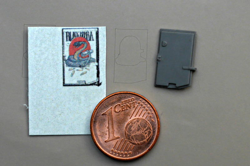 Nach Hinweisen auf Unvollkommenheiten der Bausatzdecals kam noch ein weiterer Satz von Jeight Design aus Südkorea dazu, der wiederum ein kleines, aber wichtiges Korrektur-Blatt enthält. Wobei sich die Unvollkommenheit auf die Recherche bezieht - in Sachen Druck- und Verarbeitungsqualität sind die in China gedruckten Kit-Decals über jeden Zweifel erhaben! Es fehlen schlicht Elemente, wobei ich zugeben muss, dass es im Laufe der Zeit Veränderungen gegeben hat. Weil ich sehr gute Fotos gefunden hatte, habe ich auch die Schlange in der Tür der Einstiegsleiter mit einer Kombination aus Masken und selbstgedruckten Decals gestaltet. Das zeige ich mal etwas ausführlicher - diese Vorgehensweise kann bestimmt mal jemand gebrauchen!