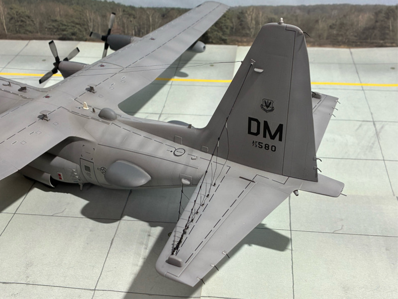 Die Decals und das fertige ModellDie Decals wurden von mir komplett selber erstellt und mit meinem Laserdrucker gedruckt. Die EC-130H Compass Call ist die achte C-130 in meiner Sammlung, und es könnten noch ein paar dazu kommen. Besonders die C-130H Senior Scout mit ihren Antennen an den Hauptfahrwerkstüren und hinteren Türen reizt mich ebenso wie eine MC-130E Combat Talon.