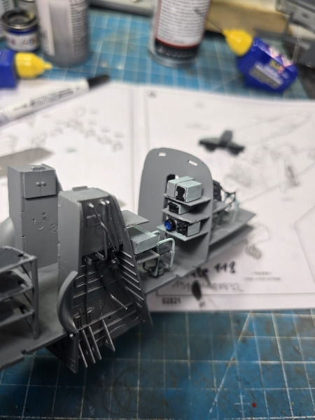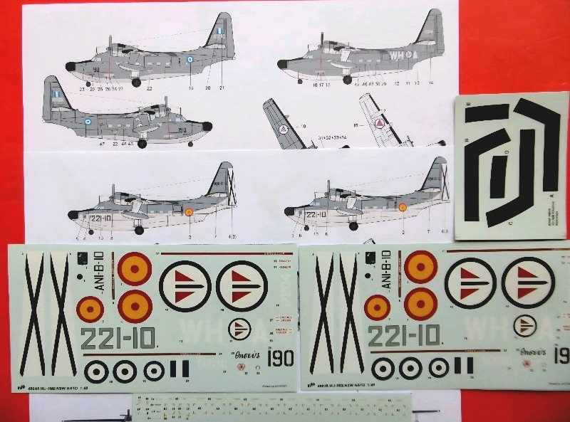 Als Zubehör habe ich mit ein Set zum Umbau zur ASW-Variante (Stupsnase, mehr Aufhängungen unter der Tragfläche, Suchscheinwerfer und Hecksonar) besorgt, Decals für diese Variante, Resinräder und ein Metallfahrwerk.