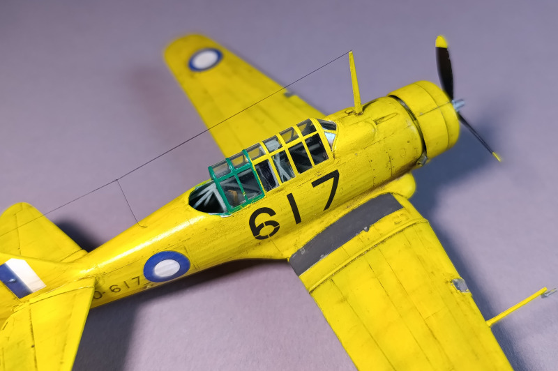 Nachdem die Abziehbilder angebracht und die Details bemalt waren, habe ich den Flieger mit Klarlack versiegelt. Leider war ich dabei wohl etwas zu großzügig, und der Klarlack hat einige der Panellines verschlossen. Das ist mir leider erst beim Pinwash aufgefallen. Ich habe die Linien nachgraviert und am Ende doch noch ein zufriedenstellendes Ergebnis erzielen können.