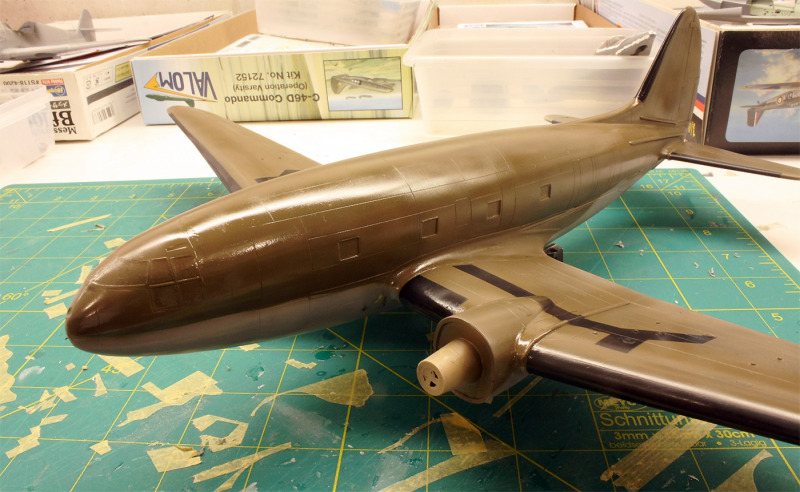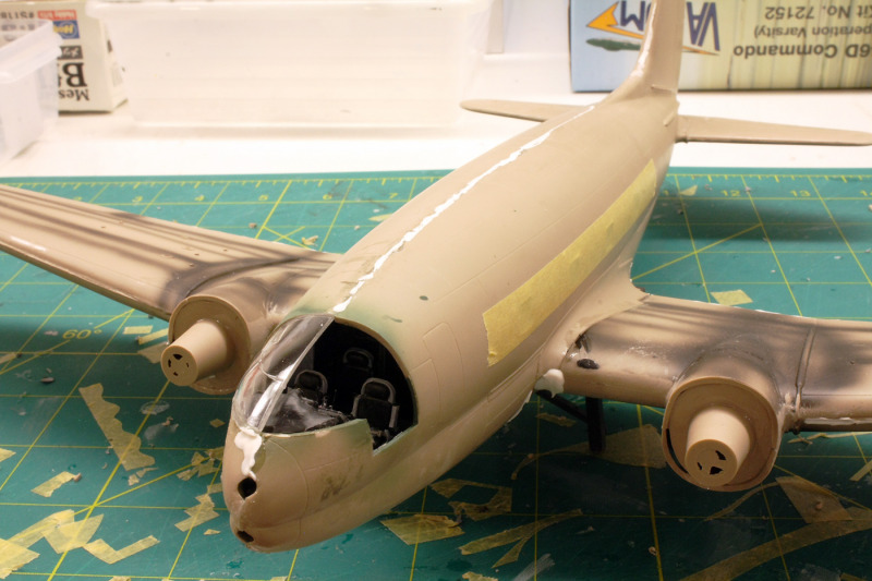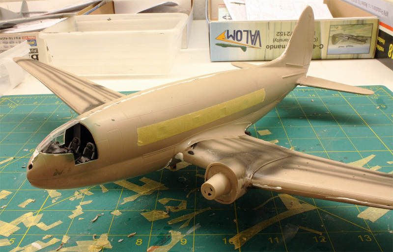 Der einzige, dafür aber folgenschwere Missstand, dem ich bei Valoms Commando begegnet bin, findet sich in der zweiteiligen Cockpithaube. Dieses wird seltsamerweise in einer linken und einer rechten Hälfte geliefert. Die Baufotos zeigen, wie ich damit umzugehen versucht habe: um einen bündigen Anschluss an den Rumpf zu gewährleisten, wurde zuerst den Rumpf montiert und dann das rechte und folgend das linke Klarsichtteil angebracht. Justament hier ließ aber die Passgenauigkeit zu wünschen übrig, was zu delikat-vorsichtigem und wiederholtem Fillern und Schleifen geführt hat.