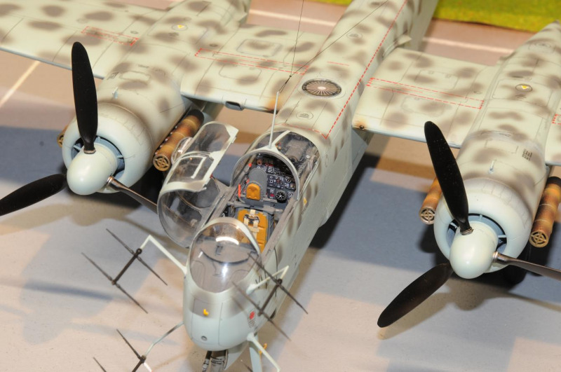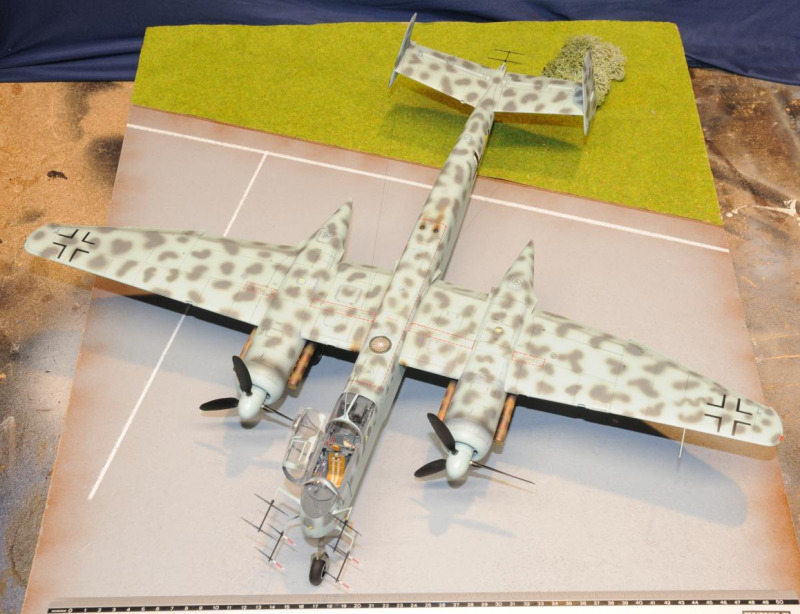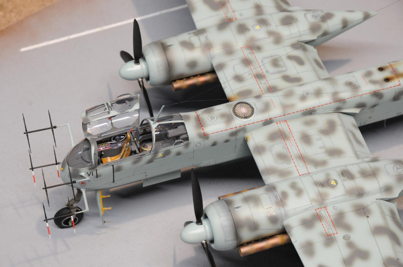 Da zu diesem Zeitpunkt der Uhu noch auf den Rücken gelegt werden konnte, wurde die Unterseite vollständig fertiggestellt mit Fahrwerksklappen, Kleinantennen, Alterungsspuren und Waffenspuren und auch das Bugfahrwerk sowie die Aufstiegsleiter.