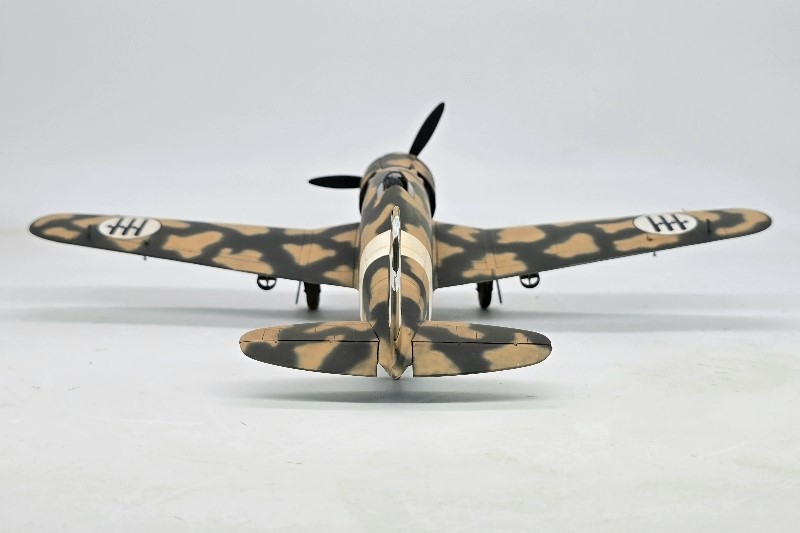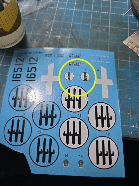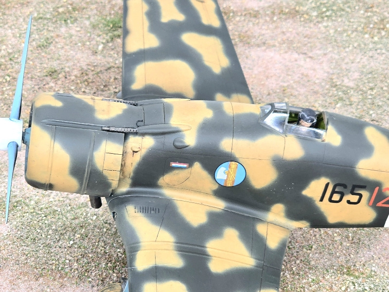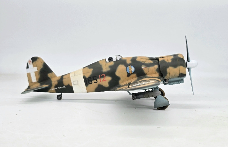 Das Modell lässt sich ganz gut bauen, es liegen sogar Resinteile als Extras mit dabei. Man kann zwei Varianten bauen. Als Zurüstteile habe ich mir extra noch detailliertere Räder gekauft und eine italienische Pilotenfigur. Einzig negativ sind die Decals, echt schlechte Qualität und beim Geschwaderwappen fehlte die blaue Farbe komplett (gelb eingekreist).