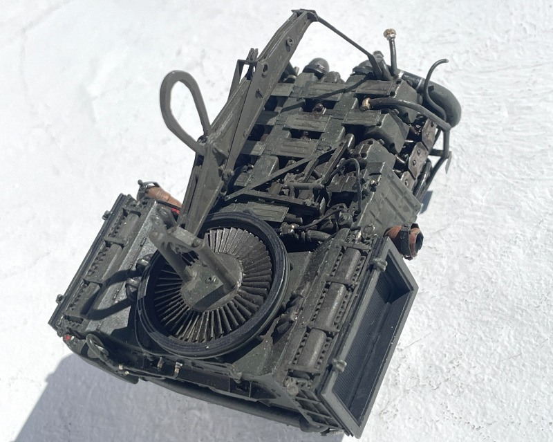 So ist das Aggregat schließlich auf dem Rücken meines Bergepanzers verlastet. So kann man es auch schön sehen.