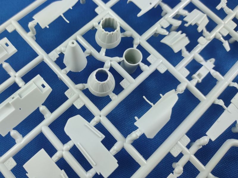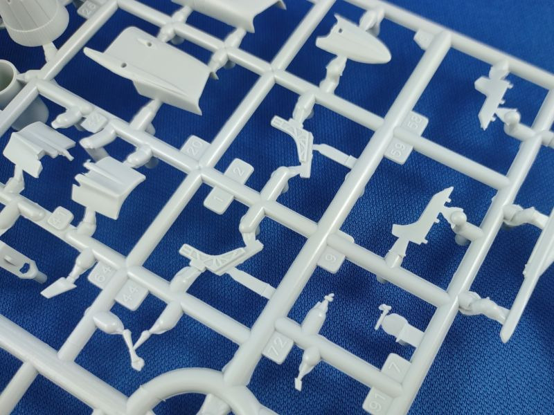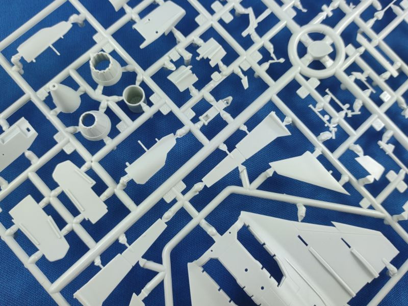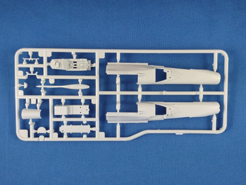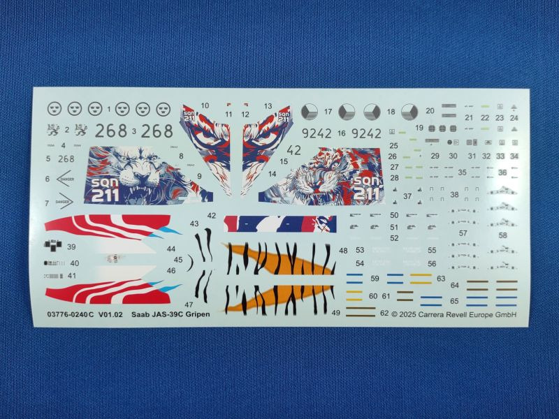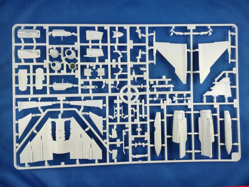 Die schwedische Saab JAS-39C Gripen gehört zu den moderneren und bekannten Jägern in Europa und wird neben Schweden in Ländern wie Brasilien, Ungarn, Thailand und der Tschechischen Republik betrieben. Zukünftig wird die Gripen auch in Peru ihren Dienst tun. Da über die Gripen hier schon viel geschrieben wurde, soll es direkt zur Kitbesprechung gehen. Der vorliegende Bausatz von Revell stellt eine Wiederauflage des in 2014 erstmals erschienen Kits dar. Dieser besteht aus insgesamt vier hellgrauen Spritzlingen, zwei Klarsichtspritzlingen sowie dem Decalbogen und der Montageanleitung. Insgesamt besteht der Bausatz aus 110 Teilen. Beim Aufmachen des Kartons überraschte Revell mit seiner neuen Klappbox, ähnlich wie man es von Zvezda kennt. Eine Ära der Schüttbox scheint in Bünde vorbei zu sein. ;-) Typisch für Wiederauflagen sind die variierenden Decalvarianten, so auch hier. Dazu aber später mehr. Die einzelnen Spritzlinge im Überblick: Spritzling A: Dieser stellt den Größten Spritzling des Bausatzes dar und enthält neben den Tragflächen und Heckrumpf diverse Teile wie das Radom, die Triebwerksdüse (in zwei Positionen), Fahrwerksschacht und Fahrwerk, Katapultsitz oder die Canards. Die Teile sind dabei weitgehend gut ausgeformt und gespritzt. Fischhaut sieht man nur einigen wenigen Stellen. Spritzling B: Dieser liegt im Doppelpack bei und enthält diverse Außenlasten wie Treibstofftanks, Luft-Luft-Bewaffnung (IRIS-T, AIM-9 Sidewinder, AIM-120B AMRAAM) sowie den Antischiffsflugkörper RBS 15F. Des Weiteren enthält dieser Spritzling Fahrerksräder und Startrampen. Spritzling A Spritzling G: Dieser Spritzling enthält den Bugrumpf, Cockpitwanne sowie weitere Teile wie dem forderen Fahrwerksschacht. Spritzling C und H: Die Klarsichtspritzlinge enthalten, wie soll es auch anders sein, die Cockpitverglasung, das HUD sowie die Schweinwerfer. Alle Teile sind dabei kristallklar und weisen keine Lufteinschlüsse auf. Decalbogen: Wie auch schon bei der Erstauflage enthält der Decalbogen eine Gestaltungsmöglichkeit für je eine schwedische und tschechische Variante. Letztere zeigt wieder eine Maschine in Sonderbemalung (Tigermeet). Der Decalbogen selbst ist sauber und versatzfrei gedruckt. Spritzling G Darstellbare Maschinen: