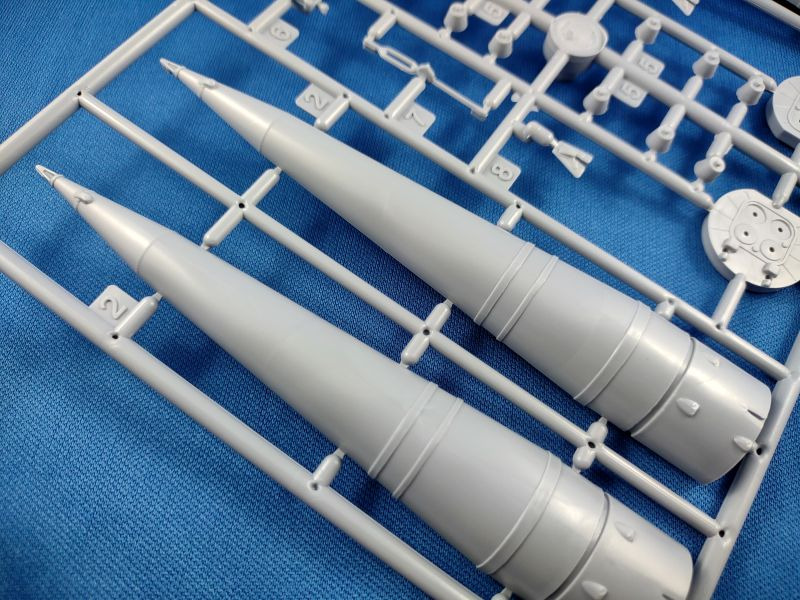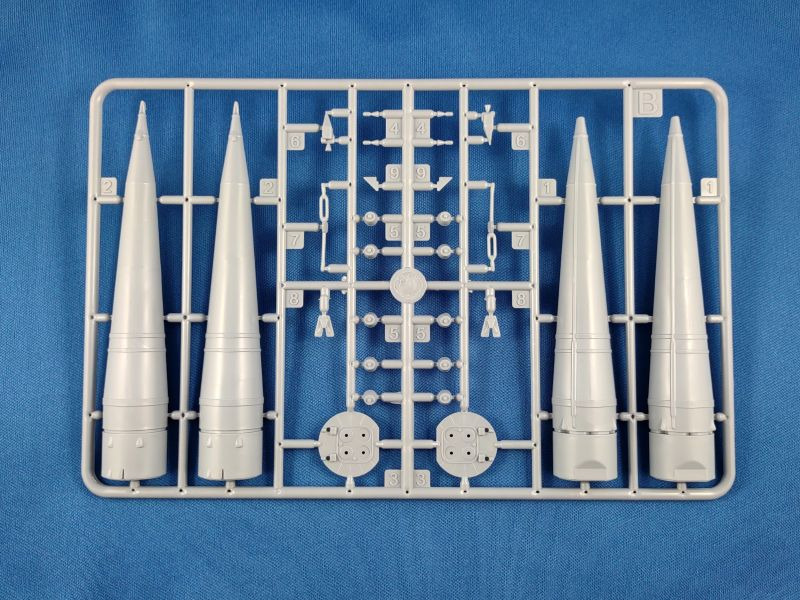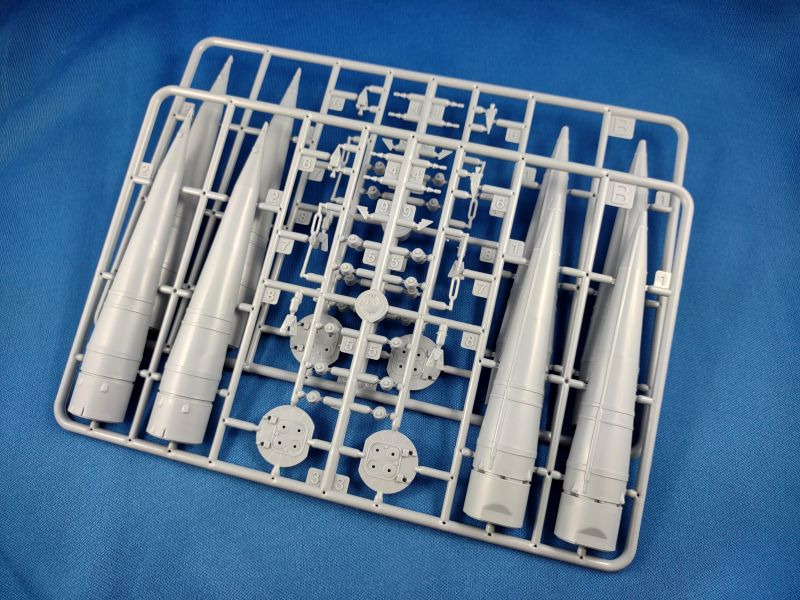 Die Woschod (russ. für Sonnenaufgang) ist eine dreistufige sowjetische Trägerrakete, welche aus der Wostok Rakete hervorging. Im Unterschied zur ihrem Vorgängermodell wurde die Woschod mit einem RD-0110-Triebwerk in der dritten Stufe ausgestattet. Damit erhöhte sich die bisherige Nutzlast von 4,7 t auf nunmehr 6,3 t. Am 16. November 1963 startete die erste Woschod mit einem militärischen Aufklärungssatelliten Zenit an Bord ins All. Der erste bemannte Flug mit einer Woschod fand ein Jahr später am 14. Oktober 1964 mit einer dreiköpfigen Besatzung statt. Bis zu ihrem letzten Einsatz am 29. Juni 1976 wurden mit der Woschod mehr 300 Starts durchgeführt. Überraschend bescherte uns 2024 der russische Hersteller Eastern Express gleich mehrere Raketen-Bausätze: 144300 – Wostok 144301 – Woschod 144302 – Sojus (1) 144303 – Sputnik 144304 – R-7A Sputnik und R-7A finden sich bislang nur auf den Kartons der drei Erstgenannten wider. Wann diese erscheinen, ist aktuell nicht zu sagen. Bei den hier genannten Bausätzen handelt es sich um komplett neue Formen. Der vorliegende Bausatz besteht aus insgesamt 96 Teilen verteilt auf fünf graue und einem transparenten Spritzgussrahmen. Ergänzt wird der Bausatz durch eine kleine Fotoätzplatine, einem kleinen Decalbogen sowie einer schwarz-weißen Montageanleitung sowie einer farbigen Bemalungsanleitung. Im gebauten Zustand erreicht das Modell eine Höhe von 31,0 cm. Folgende Spritzgussrahmen liegen bei: Spritzling A: Dieser enthält die zweite Raketenstufe mit entsprechenden Teilen wie den Rumpfhälften. Spritzling B: Dieser Spritzling liegt in doppelter Ausführung bei und beinhaltet alle Teile der ersten Stufe, welche aus den vier seitlich angeflanschten Booster-Raketen besteht. Spritzling C: Dieser Spritzling enthält wiederum die sog. dritte Stufe samt dem Nutzlast-Adapter und der Nutzlast-Verkleidung für das Woschod-Raumschiff. Spritzling F: Der Klarsichtspritzling enthält unter anderem den Ständer, auf dem das Modell später aufgesteckt wird, sowie optionale Ringe als Verbindung für die Stufen zwei und drei. Spritzling K: Der letzte Spritzling enthält die typischen Verbindungsstreben in V-Form sowie den dazugehörigen Positionierungsring, welche die Stufen zwei und drei miteinander verbinden. Fotoätzplatine: Diese enthält ebenfalls die typischen Verbindungsstreben, allerdings als ein Teil. Decalbogen: Der kleine Decalbogen ist sauber und versatzfrei gedruckt und beinhaltet neben dem Namen „Woschod“ in kyrillischer Schrift diverse Wartungs-/Sicherheitshinweise sowie in silberner Farbe die Verbindungsstreben.