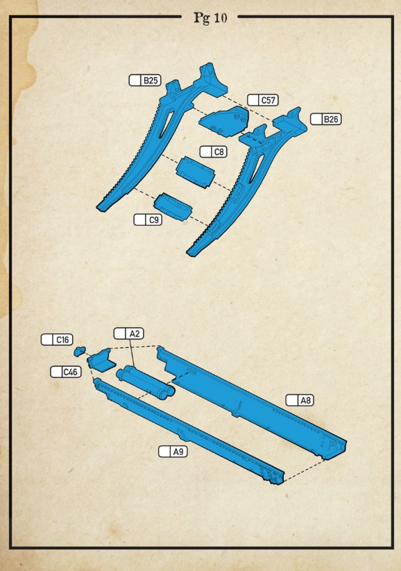 Photoätzteile …… sind im Bauplan gelb abgedruckt, dabei handelt es sich u.a. um drei Handräder, die zum Richten der Haubitze verwendet wurden. Das Icon „anneal“ empfiehlt das Ausglühen der Metallteile über einer Flamme. Das soll das Metall wohl „weicher“ machen, um es leichter biegen zu können. Aber zum Thema Ätzteile hat sicher jeder so sein eigenes „Rezept“. Eine Biegehilfe leistet auf jeden Fall gute Dienste.
