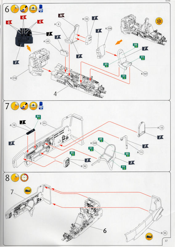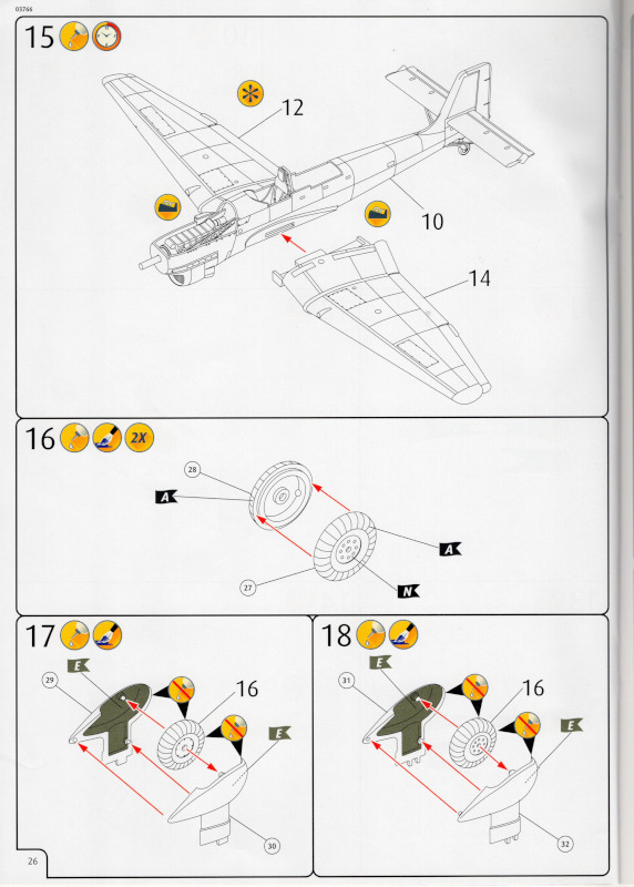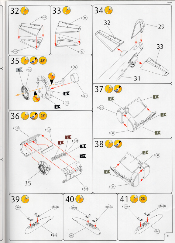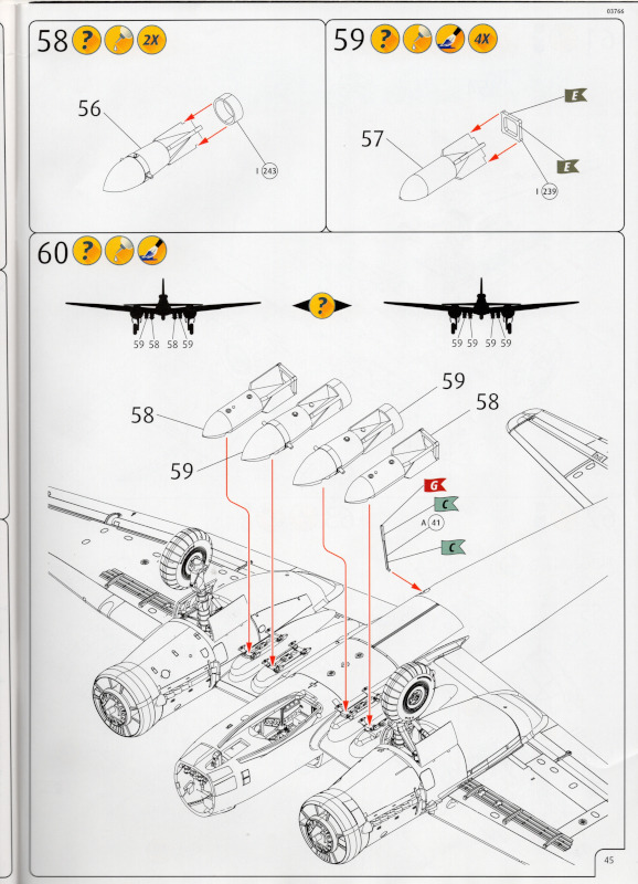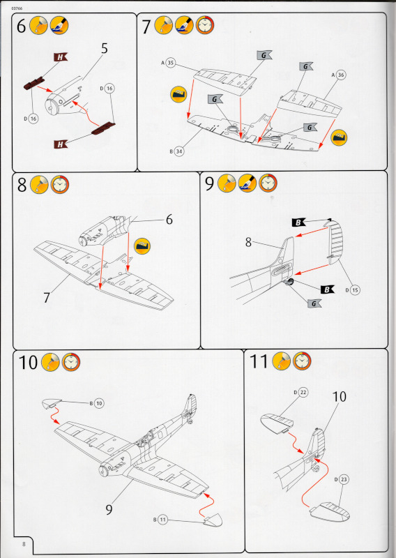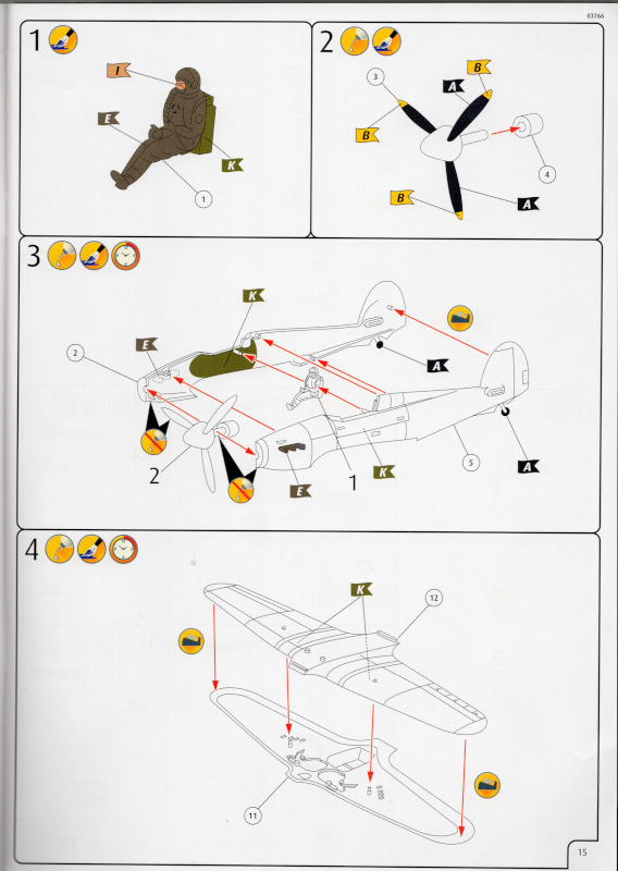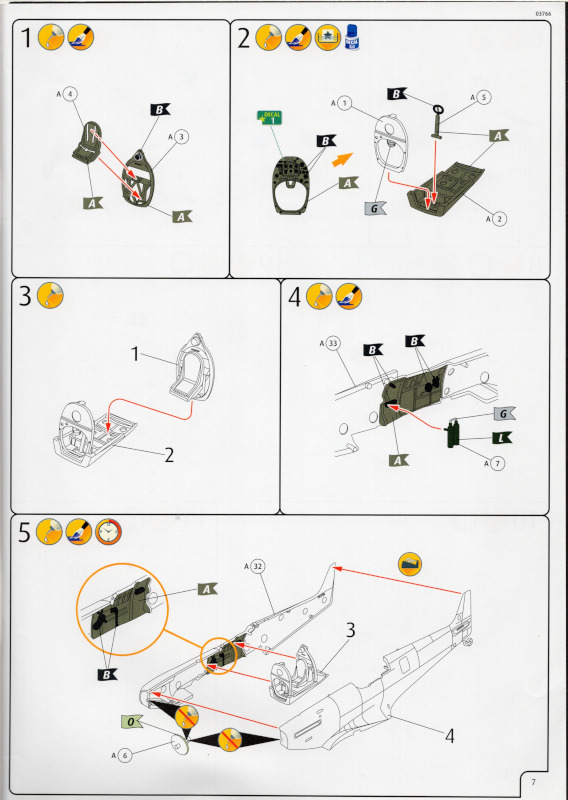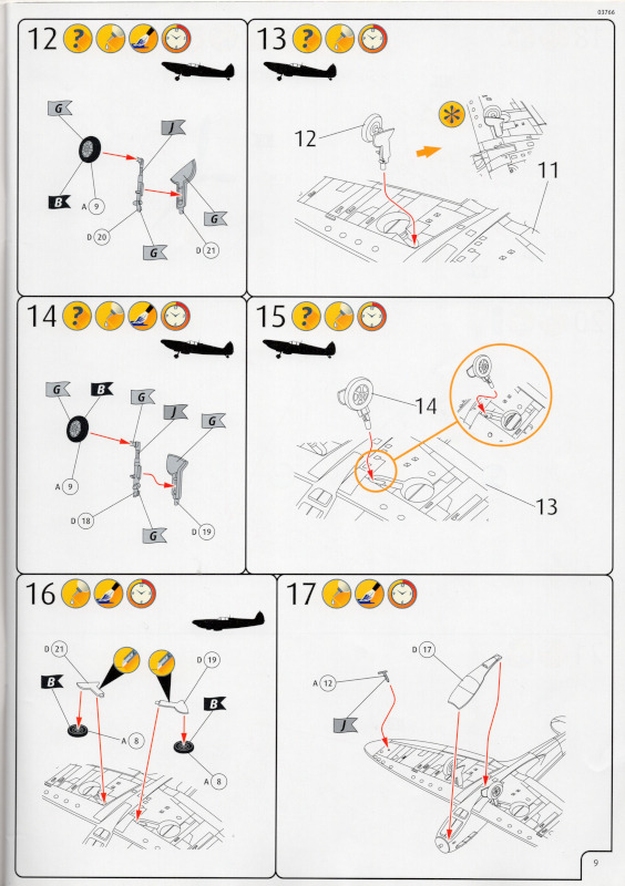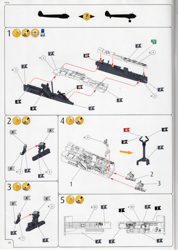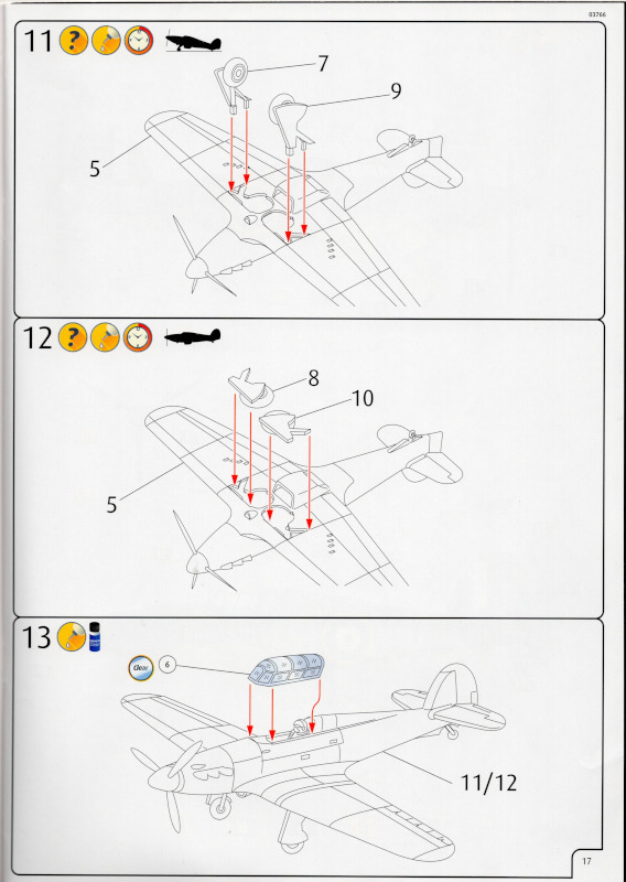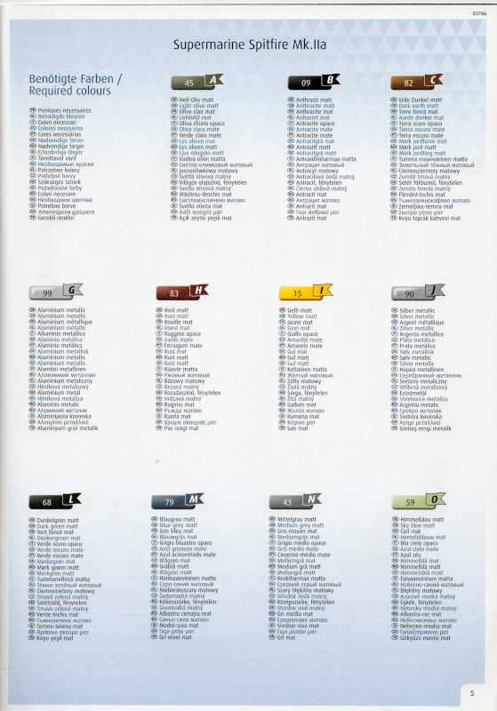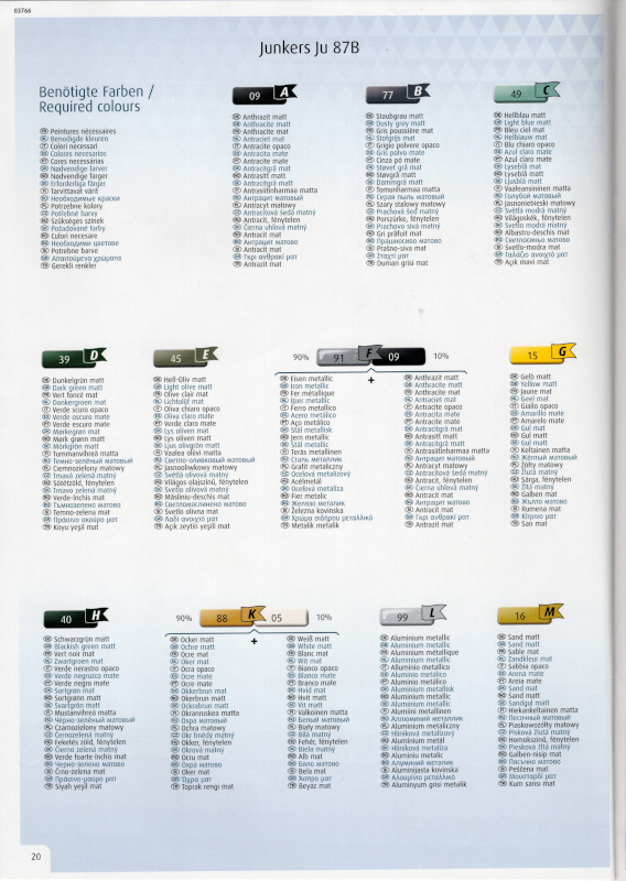 Der MarkierungsbogenDer Bogen ist die einzige Neuheit an diesem Bausatz. Die Markierungen sind glänzend und augenscheinlich fehlerfrei gedruckt. Bei der Spitfire Mk.IIa kann die Maschine mit der Werknummer P7420 dargestellt werden. Interessant ist, dass sie außer dieser Nummer keine weiteren Staffelmarkierungen trägt. Bei der Hurricane Mk.Ia kann die Werknummer P2923, Kennung VY-R, der No. 85 Sqn. dargestellt werden. Hier sind auch eine größere Anzahl an Wartungshinweisen enthalten. Die gleiche Maschine war auch im ersten Set von 2010 enthalten. Bei der Junkers Ju 87 B-2 kann die T6+HL der 3./StG 2 aus der Zeit August 1940 dargestellt werden. Auch hier sind ein paar Wartungshinweise enthalten. Die gleiche Maschine war auch im ersten Set von 2010 enthalten. Bei der Junkers Ju 88 A-1 kann die B3+DR der 7./KG 54 aus der Zeit September 1940 dargestellt werden. Hierfür entfallen die meisten Markierungen des gesamten Bogens. Zahlreiche Wartungshinweise warten darauf, verarbeitet zu werden. Zusätzlich ist zu erwähnen, dass Revell hier die Markierungen der 1:32er Version des Bausatzes verwendet hat. Darstellbare Maschinen: