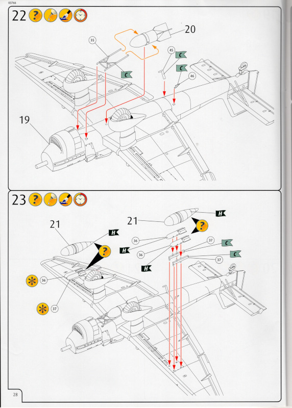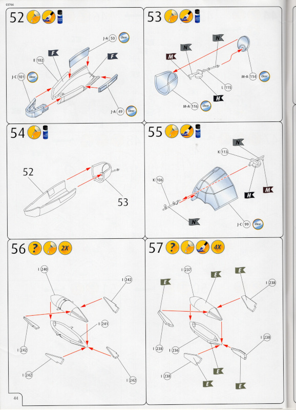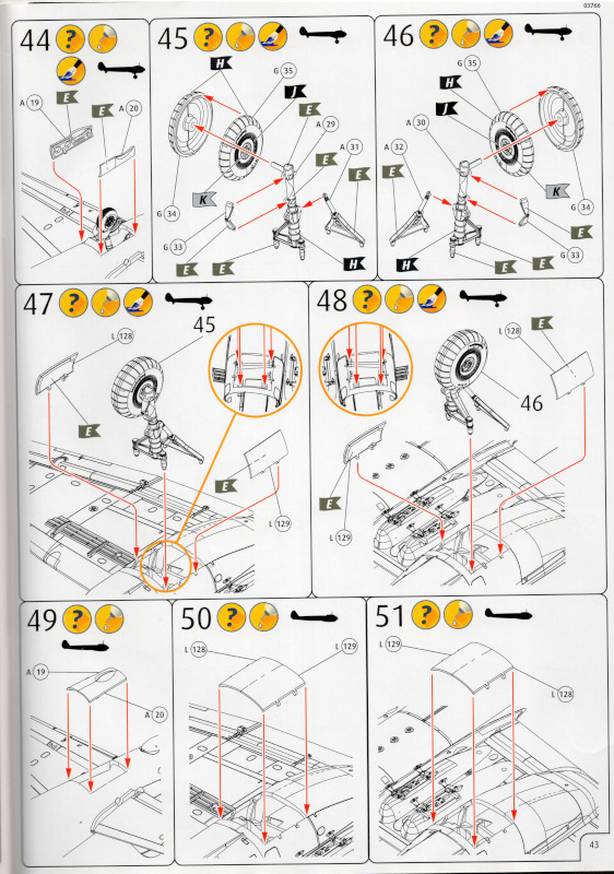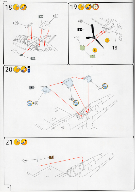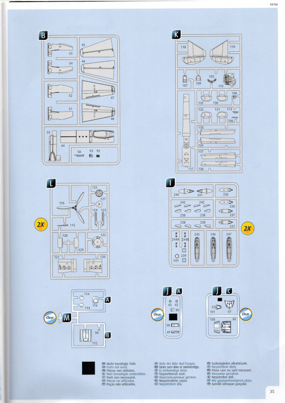 Die BauanleitungMit 48 Seiten im Format A4 ist die Bauanleitung recht umfangreich. Bei vier zu bauenden Modellen ist das aber auch kein Wunder. Bis auf eine andere Hintergundfarbe sind die 21 Bauabschnitte identisch zum Originalbausatz. Das trifft auf alle Zeichnungen der vier Bausätze in diesem Karton zu.