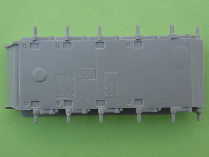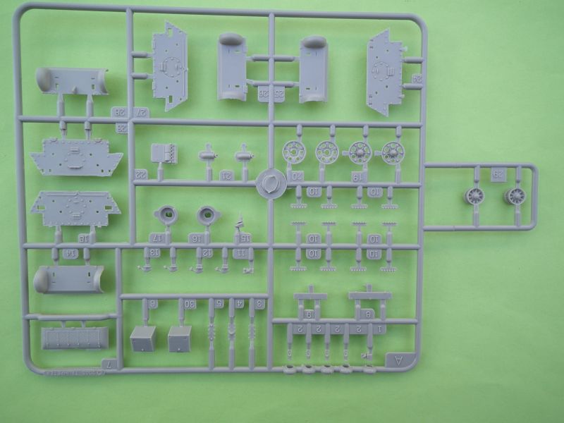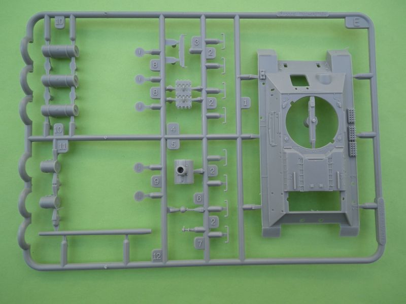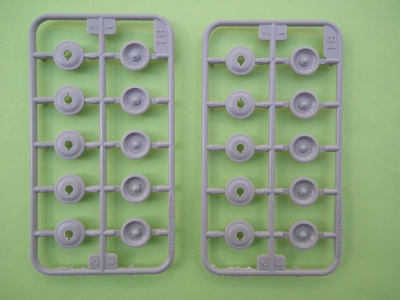 Besprechung:zum Vorbild:Zum meistgebauten Sowjetischen Panzer des II. Weltkrieges muss man nichts mehr schreiben. zum Modell:Der Bausatz ist dem bereits hier von Modellbaufreund Thorsten Wieking vorgestellten sehr ähnlich. Die Unterschiede sind die große Bodenplatte, die Verpackung, die Bauanleitung, die Kanone und die Decals. Mit dieser erst kürzlich erschienenen Variante wendet sich Trumpeter an die Gamer von World of Tanks. Alle Bauteile sind eingeschweißt, so geht nichts verloren. Die Kunststoffteile haben gewohnt gute Trumpeter-Qualität, trotz des Alters der Gussform keine Fischhaut, Auswerfer- oder Sinkstellen. Die Passgenauigkeit ist gut. Der Turm hat keine offenen Luken. Am Turm und an der Wanne sind viele Details, z.B. Wartungsklappen für den Motorraum, direkt angegossen, auch das in guter Qualität. Unverständlich: die Haltegriffe an der Wanne liegen als Einzelteile bei. Die am Turm sind brettähnlich angegossen; Abschneiden und Draht zu Hilfe nehmen. Die, nicht bei jedem Fahrzeug vorhandenen, Antennen sollen aus Gussresten selbst gezogen werden. Auf der Unterseite der Wanne sind Wartungsöffnungen dargestellt. Die Vinyl-Kette ist nicht gerade und in keiner Weise zeitgemäß. Schade, dass sich Trumpeter nicht zu einer anderen Variante durchringen kann oder eine Alternative als Zubehör anbietet. Revell bietet den T-34/85 seit 2016 in besserer Qualität an. Die Räder haben einen deutlich abgesetzten Rand, der die Bemalungsgrenze zwischen Rad und Gummiauflage darstellt und sind insgesamt nett detailliert. Ein paar Werkzeuge und Kisten sind einzeln abgegossen und können separat bemalt und danach verbaut werden. Die 85 mm Kanone hat eine offene Mündung; kein Aufbohren nötig. Es liegen zwei Kanonen im Bausatz. Eine dürfte die frühe D-5T (die mit dem Ring an der Mündung) und die andere die Standardwaffe der Massenproduktion Zis-S-53 sein.