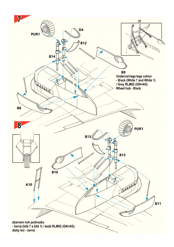Die Bauanleitung......wurde neu erstellt und besteht jetzt aus zehn farbig gedruckten Seiten im Format A5. Die Zeichnungen haben die gleiche Größe wie in der Erstauflage. Subjektiv sind sie vielleicht etwas klein, aber sie sind noch verständlich. Dort sind auch zusätzliche Farbangaben enthalten und Hinweise, wo Löcher für die Bewaffnung zu bohren sind. Diese Arbeit dürfte etwas fummelig sein.